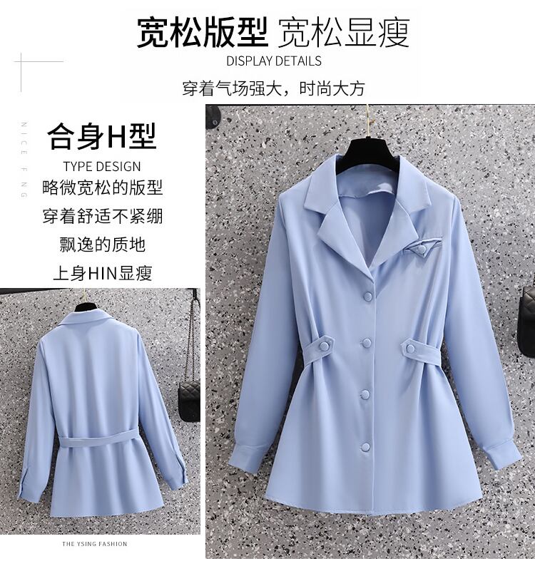 大きいサイズの婦人服 2023 春服ファットシスターズ新しいファッションスーツシャツミッドレングスカバーアップ薄いトップ 大きめサイズ スプリング 春物 888418988866429