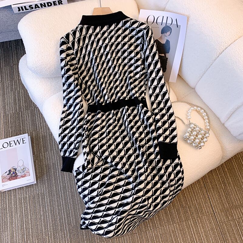 プラスサイズの婦人服 2023 春の新しいスタイルの脂肪姉妹ウエスト痩身気質デザイン感覚カバー肉ニットドレス女性 大きめサイズ スプリング 春物 8884133857507941