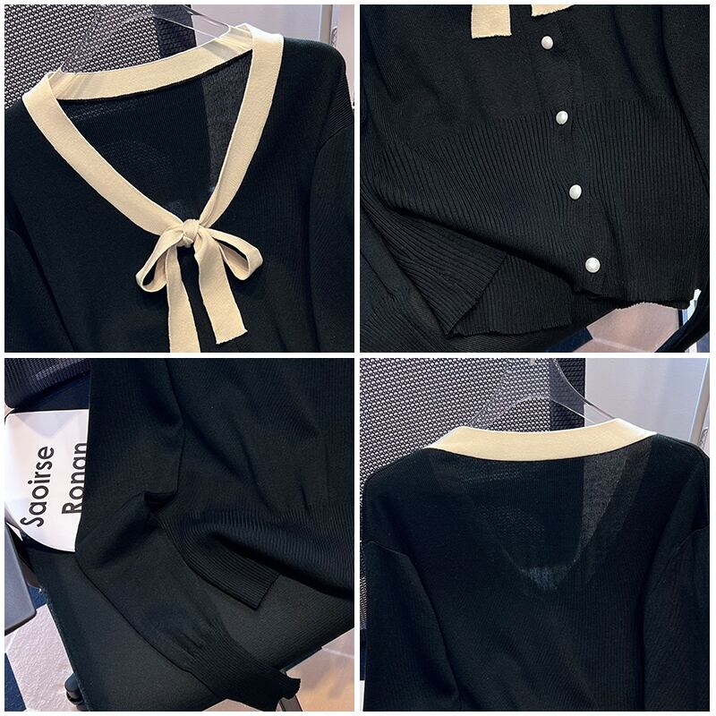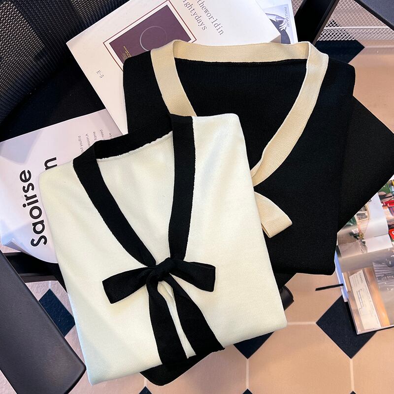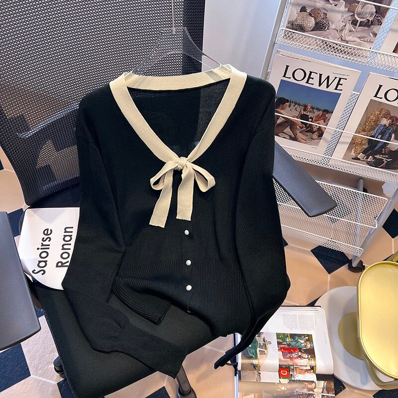 プラスサイズの婦人服 2023 ファットシスター春の新オールマッチシンプルなスリムちょうニット底入れシャツ女性 リボン 大きめサイズ スプリング 春物 8884142289595864