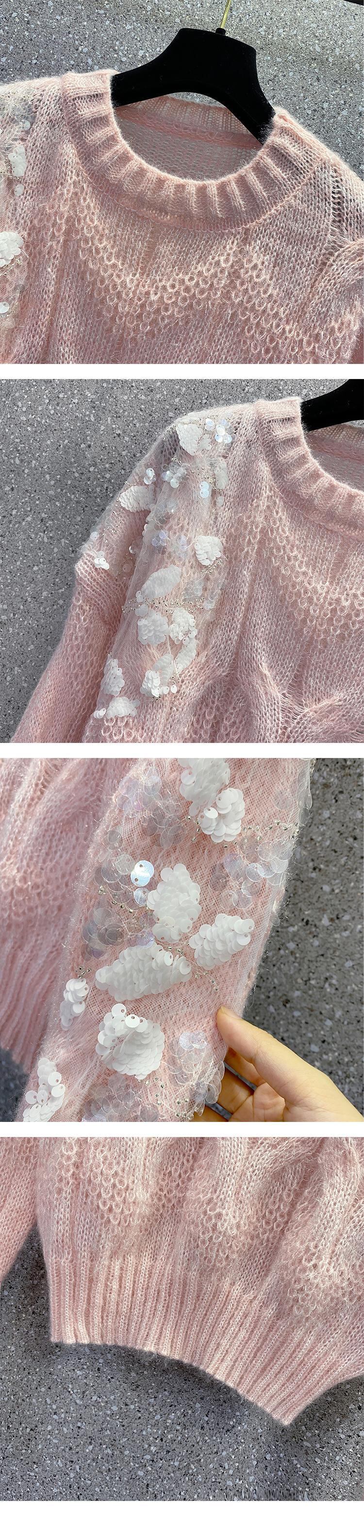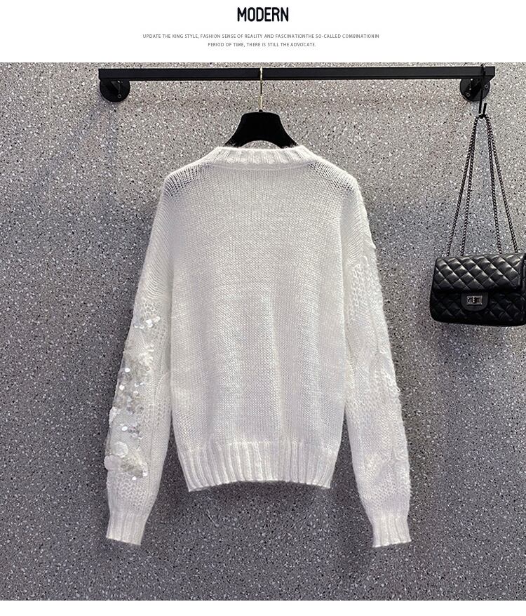 プラスサイズの婦人服 2023 春の新しい太った姉妹のファッション中空デザインゆるい腹カバーの年齢を減らすニット セーター 大きめサイズ スプリング 春物 8884120013685119