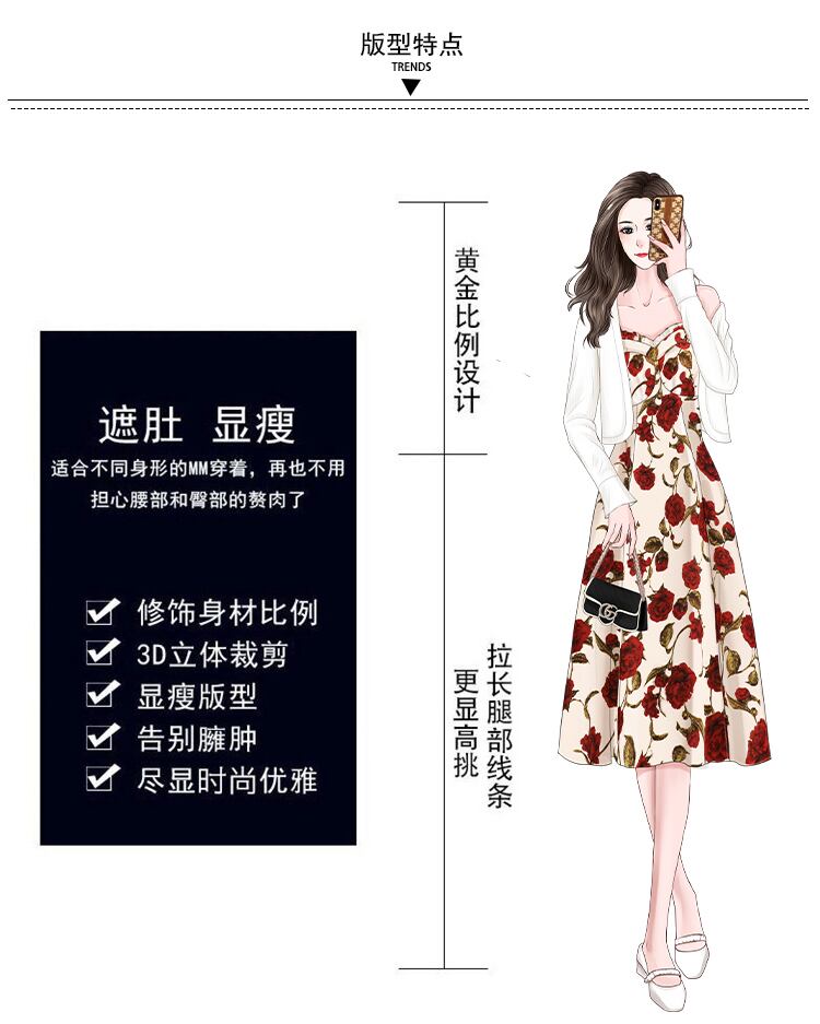 プラスサイズの婦人服 2023 ファットシスター夏の新しい甘い花柄サスペンダースカートカーディガンジャケット痩身ツーピースセット 大きめサイズ 大人ガーリー スウィート キュート カジュアル サマー 夏物 8884142731238819