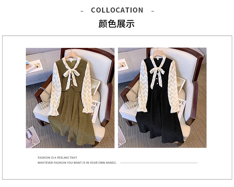 プラスサイズの婦人服 2023 脂肪姉妹春の新フレンチウエスト痩身レーススプライシング気質ドレス女性 大きめサイズ スプリング 春物 8884155105916206