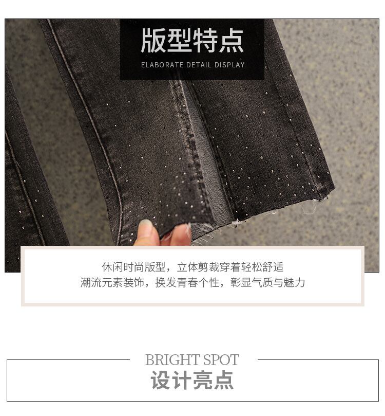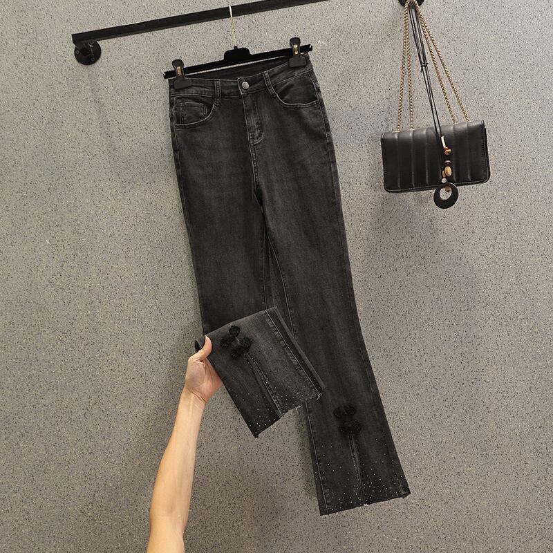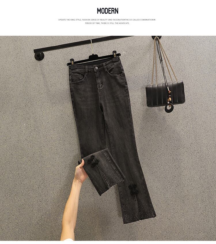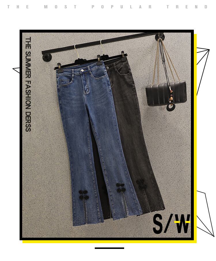 プラスサイズの婦人服2023ファットシスター春の新しいファッションスリットは、薄いオールマッチの年齢を下げるハイウエストウォッシュドジーンズを示しています 大きめサイズ スプリング 春物 8884178325544744
