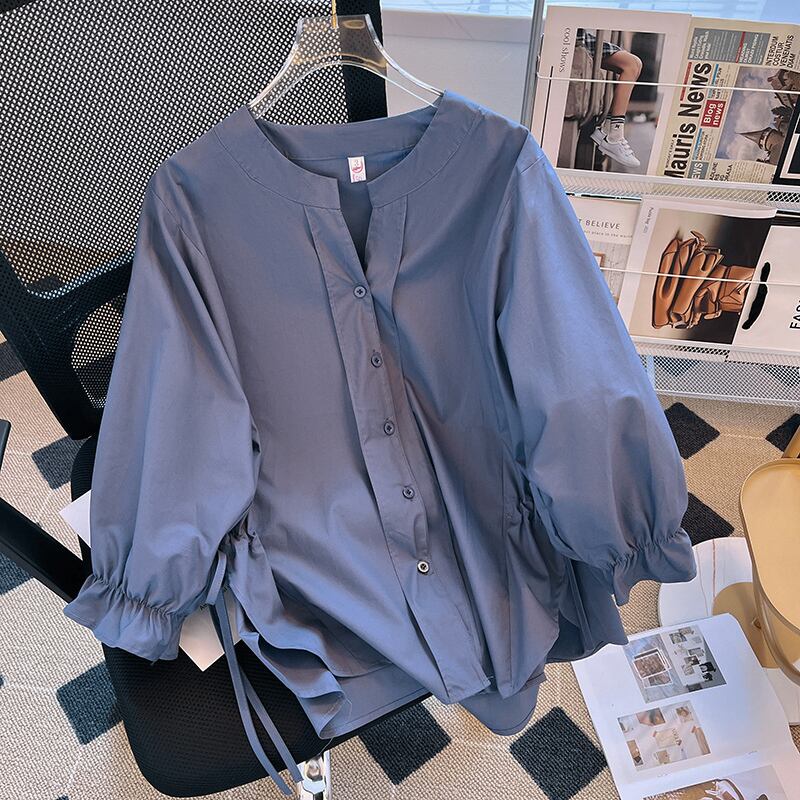 プラスサイズの婦人服 2023 太った姉妹春の新しい無地気質薄くて年齢を減らす eign スタイル長袖シャツトップ女性 ロング 大きめサイズ スプリング 春物 ソリッドカラー 8884133011985242