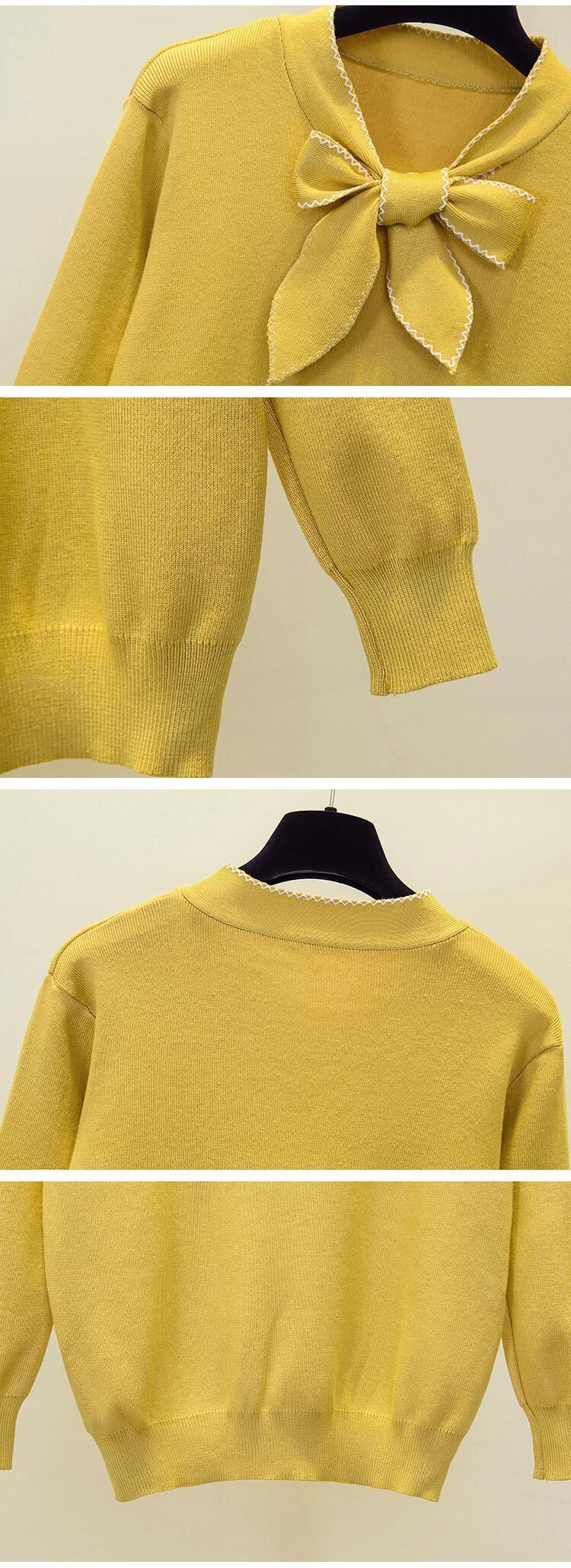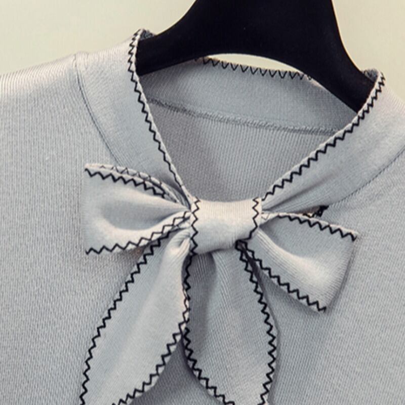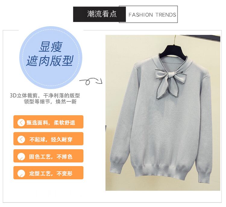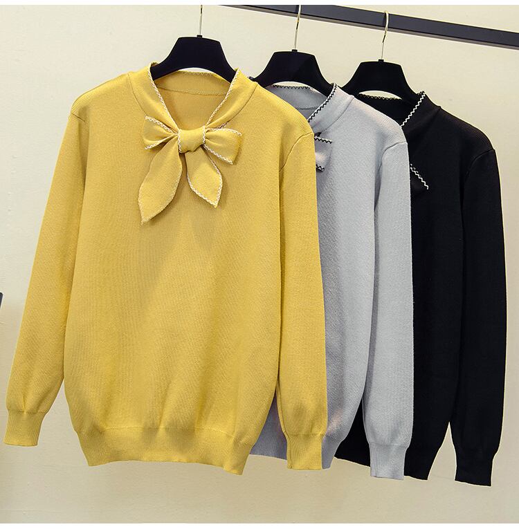 プラスサイズの婦人服 2023 トレンディな女性の春の新しいファットシスターウエスタンスタイルのニットルーズで薄いちょう結びのセーターボトムシャツ リボン 大きめサイズ スプリング 春物 888419117016535