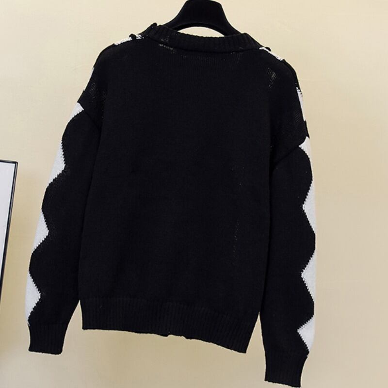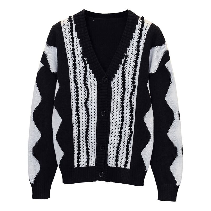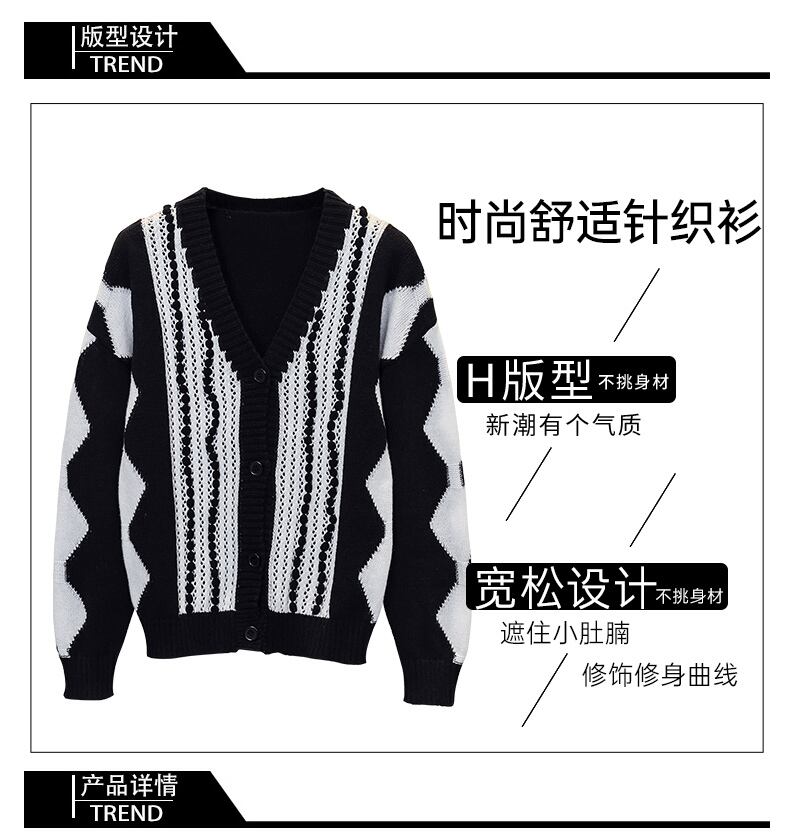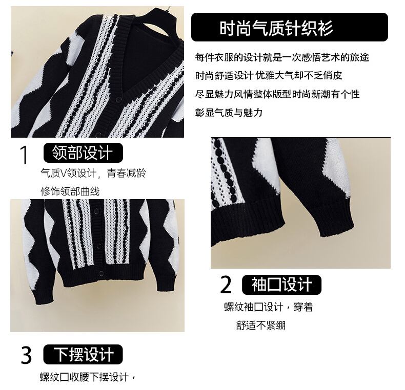 プラスサイズの婦人服 2023 春の新しいファットシスターカラーマッチングストライプデザインカーディガンバージョン長袖ニットセーターの女性 ロング 大きめサイズ スプリング 春物 8884184492382993