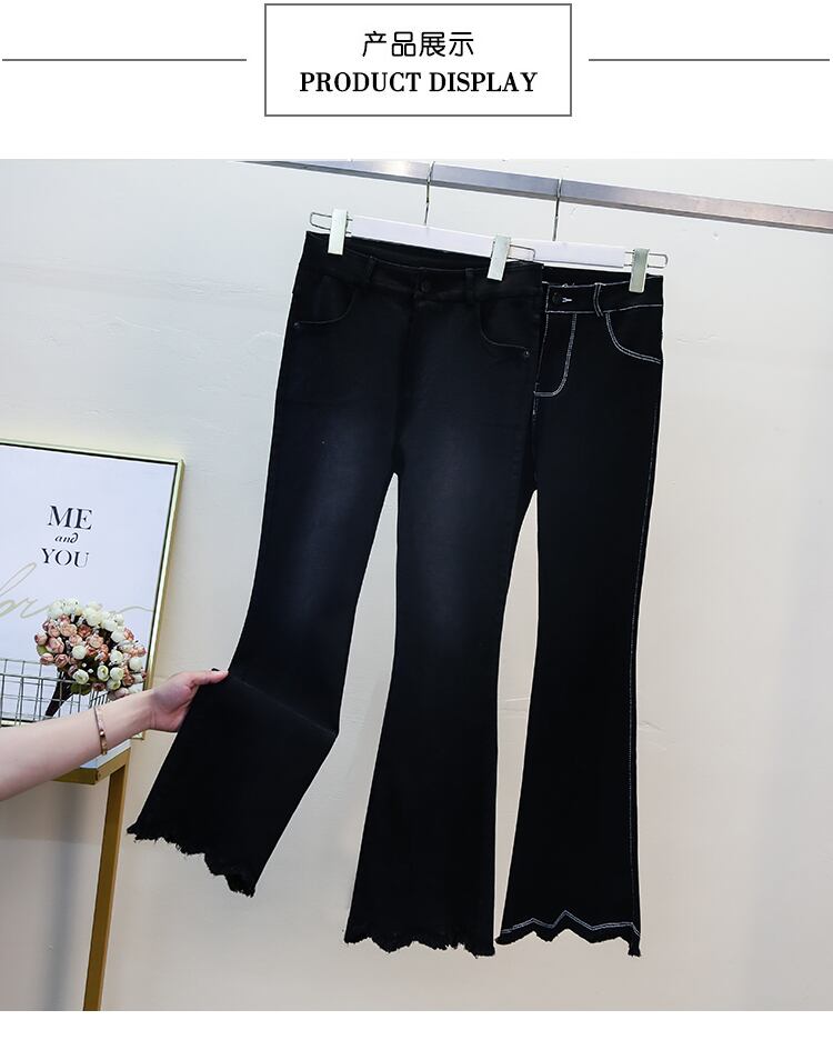 大きいサイズの婦人服 2023 春の新しいスタイルの太った姉妹バージョンのハイウエストと薄いフリルのデザインの気質感は少しブーツカット パンツです。 ハイウェスト 大きめサイズ スプリング 春物 8884129772375172