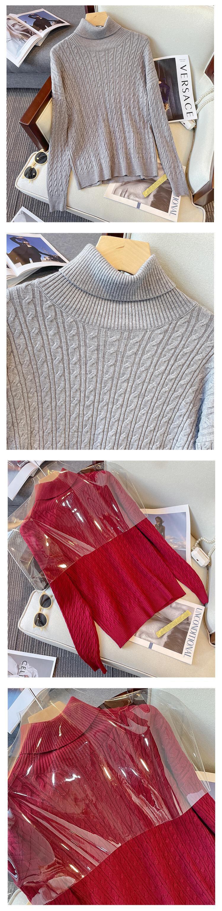 プラスサイズの婦人服 2023 トレンディな女性の春の新しいファットシスターファッションハイネックニット肥厚薄いセーター底入れシャツ潮 大きめサイズ スプリング 春物 8884148589881995