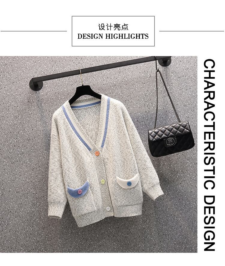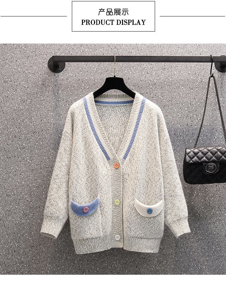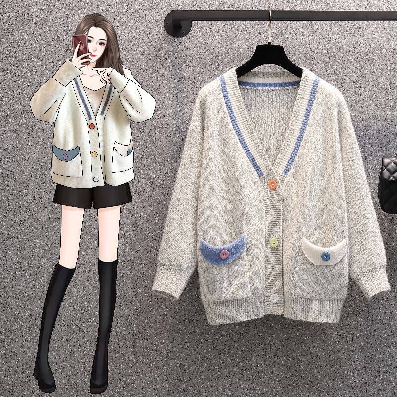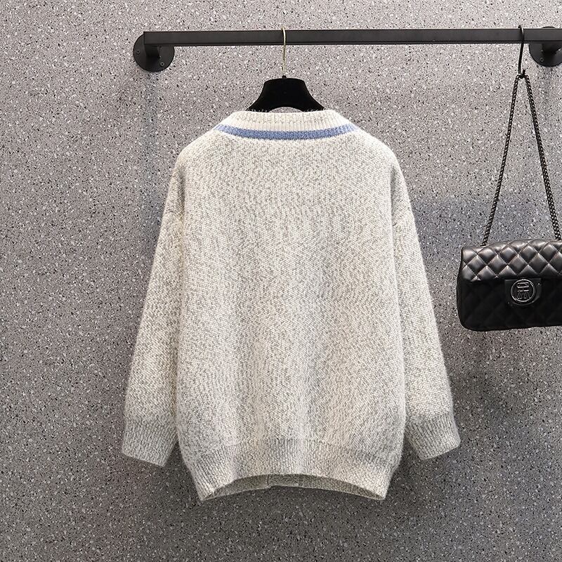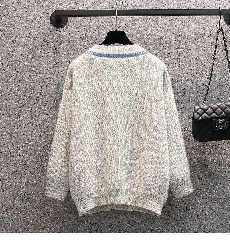 大きいサイズの婦人服 2023 トレンディな女性の春の新しいスタイルの太った姉妹のファッションの気質ゆったりとした薄い上着オールマッチ長袖セーター ロング 大きめサイズ スプリング 春物 8884124870815127