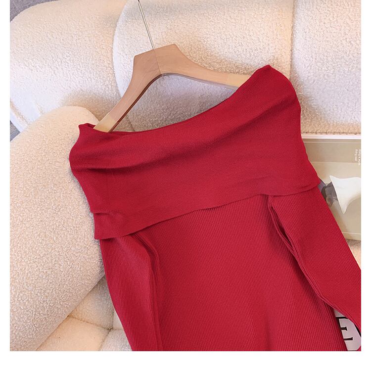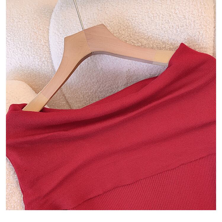 プラスサイズの婦人服 2023 脂肪姉妹春の新セクシーなワンショルダーオフショルダースリムフィット鎖骨ニットセータートップ 大きめサイズ スプリング 春物 8884130604924501
