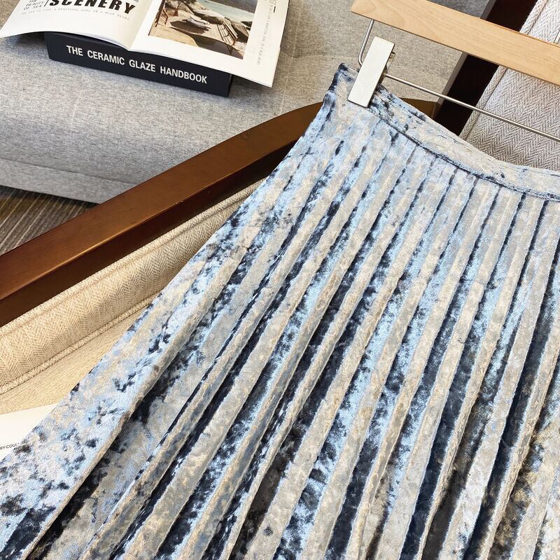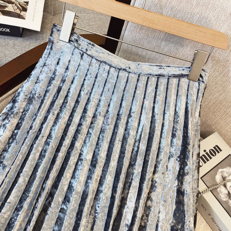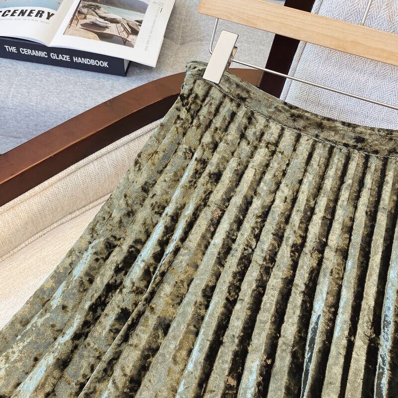 プラスサイズの婦人服2023ファットシスター春の新作オールマッチウォームミドル丈スカートゴールドベルベットプリーツスカート 大きめサイズ スプリング 春物 8884170597337167