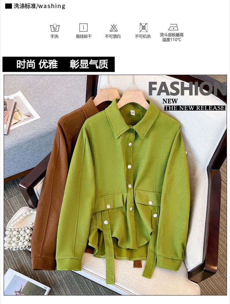 大きいサイズの婦人服 2023 ファット シスター 春の新しいファッション ルーズ カーディガン 長袖シャツ デザイン ウエスタン スタイル トップ ロング 大きめサイズ スプリング 春物 8884110939725564