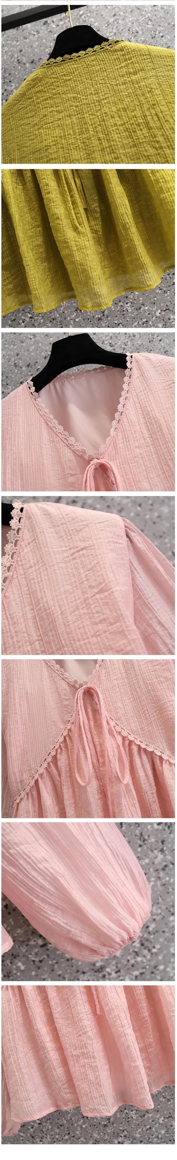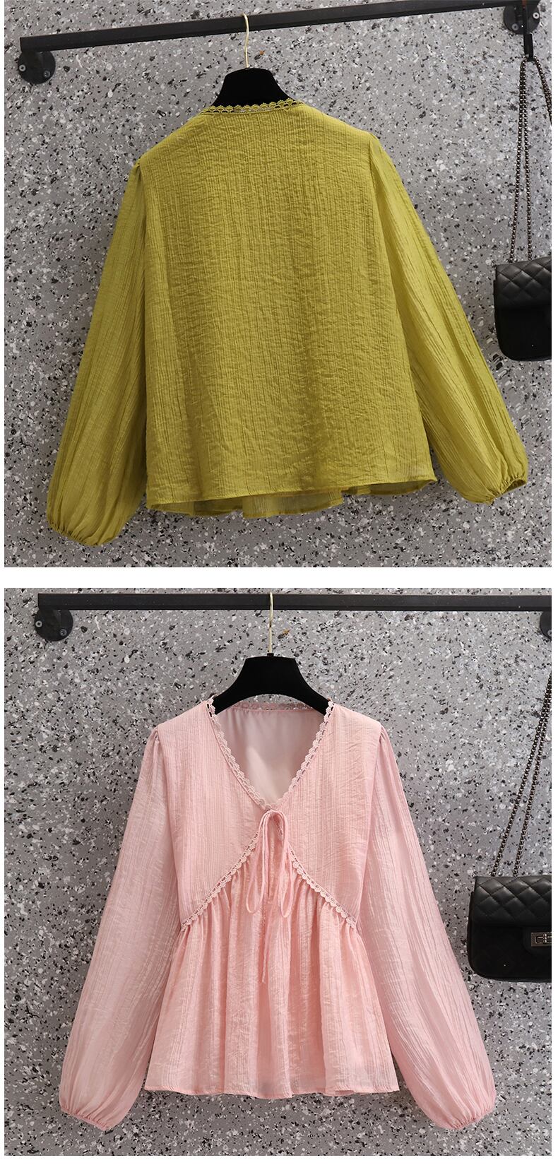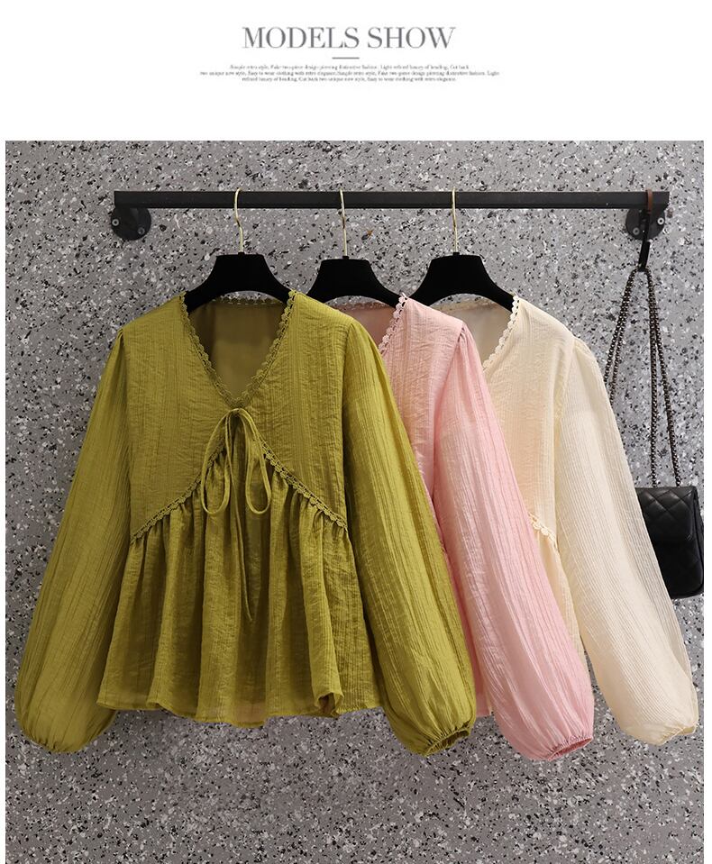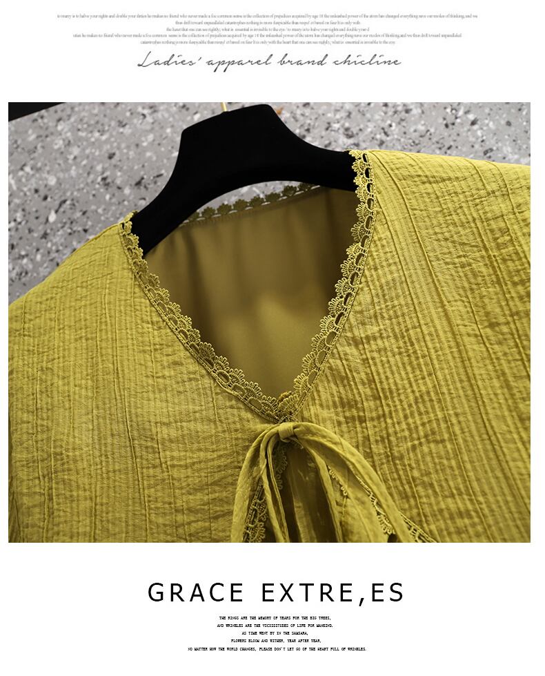 プラスサイズの婦人服 2023 春の新しいスタイルの太った姉妹は、薄くて eign スタイルの年齢を減らす V ネックのシックなシフォンの気質のシャツの女性に見えます 大きめサイズ スプリング 春物 Vネック 8884136836787439