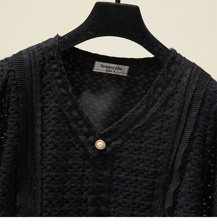 大きいサイズの婦人服 2023 トレンディな女性の春の新しいスタイルの太った姉妹の底入れ底入れカバー腹痩身オールマッチレース長袖シフォンシャツ ロング 大きめサイズ スプリング 春物 888411163920178