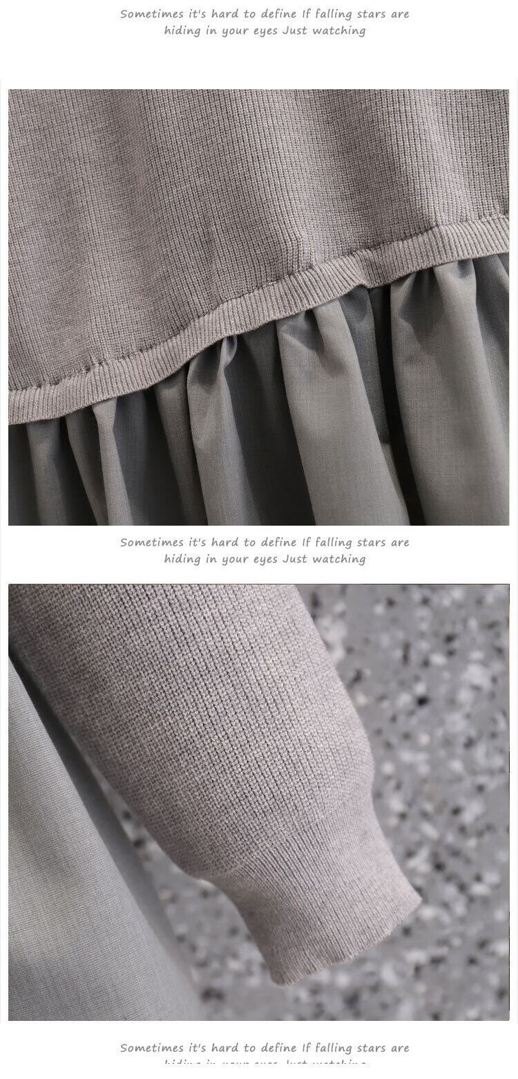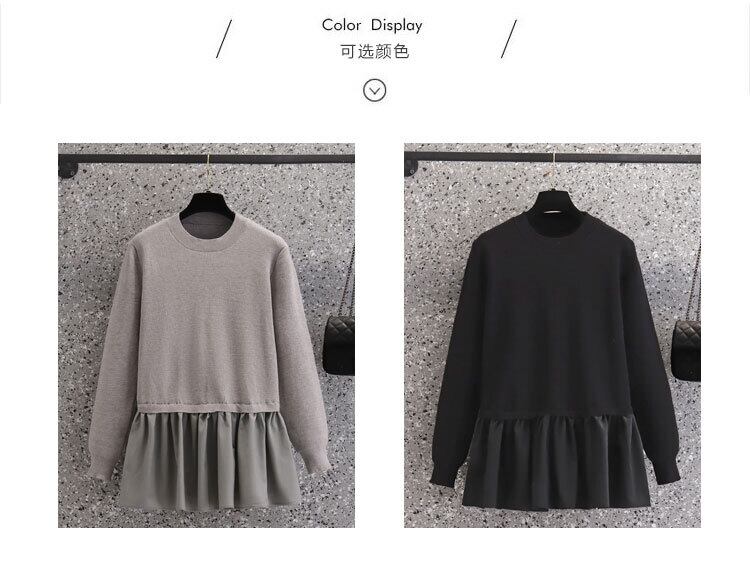 プラスサイズの婦人服 2023 ファットシスター春の新緩い肥厚無地スプライシング偽ツーピースニットセータートップ 大きめサイズ スプリング 春物 ソリッドカラー 8884168203579749