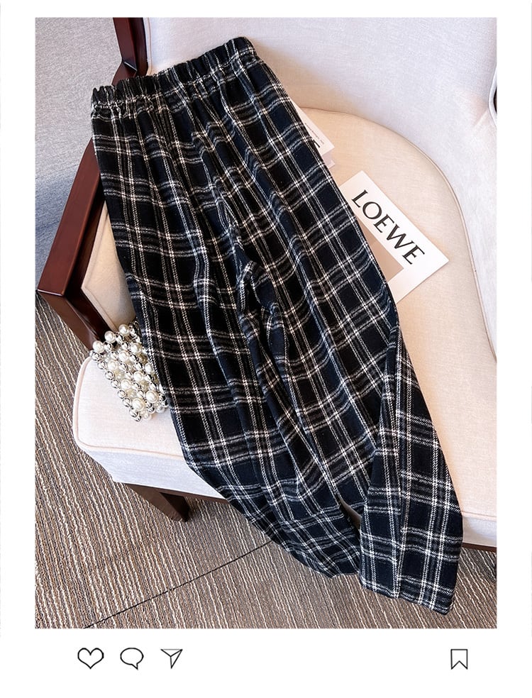 大きいサイズの婦人服 2023 春の新しいゆったりとした薄い気質の格子縞起毛ストレート カジュアルなズボン太った姉妹 大きめサイズ スプリング 春物 8884194621922604