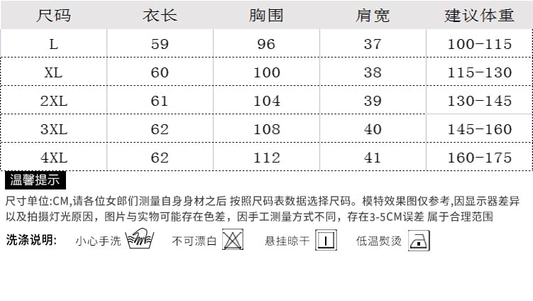 体重表記について、中国は2倍の体重で表記されています。例えば、Lサイズ→推奨90kg〜116kgであれば、45~58kg程度の方が対象になります。海外サイトを使用する方はお気を付けください。
