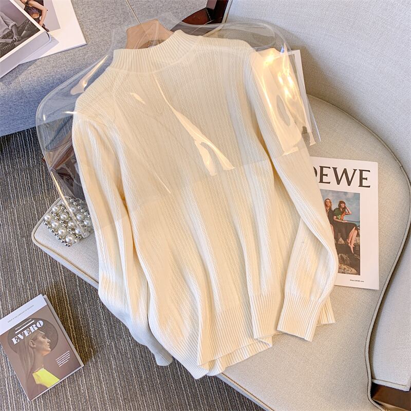 プラスサイズの婦人服 202 冬の新しいスタイルの太った姉妹オールマッチ無地ハーフハイカラー気質肥厚肉カバーニットセーター女性 大きめサイズ ウィンター 冬物 ソリッドカラー 8884175856605459