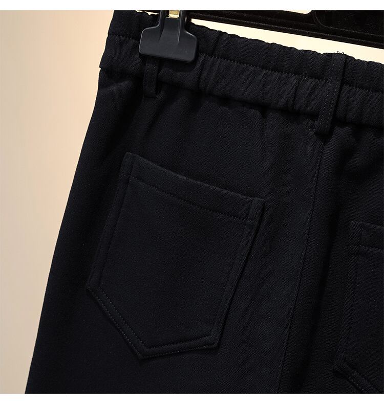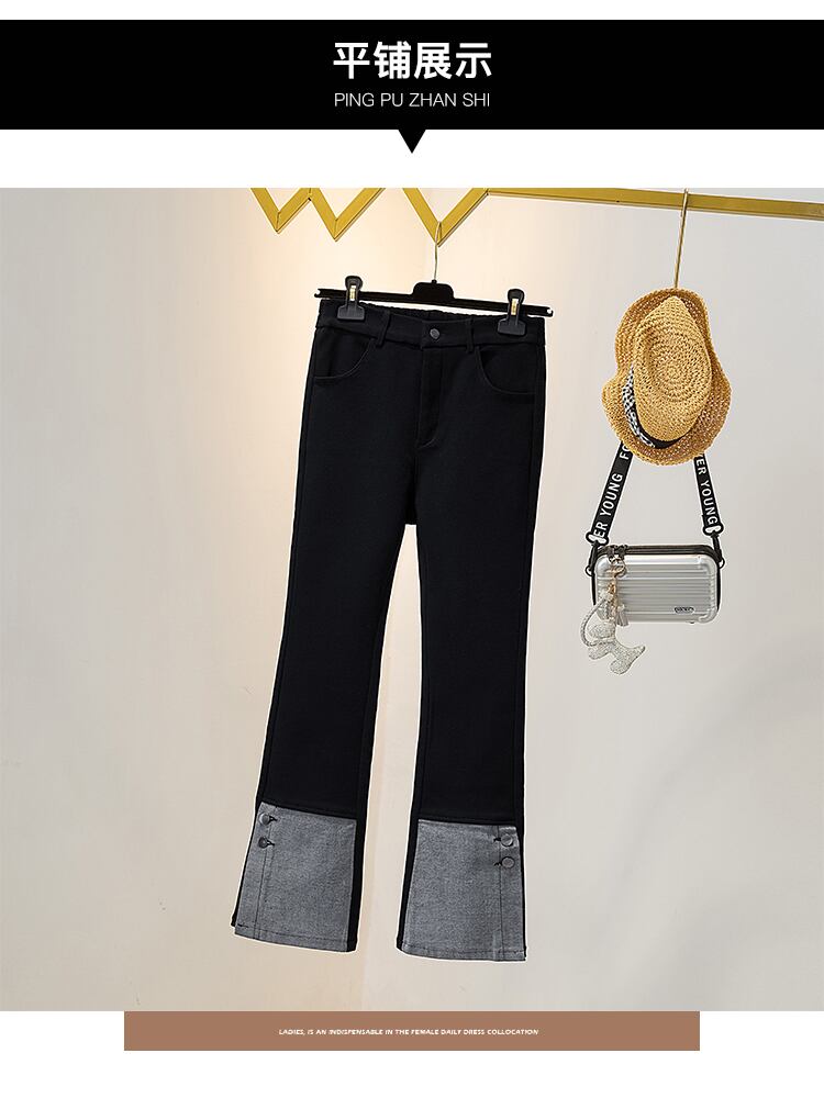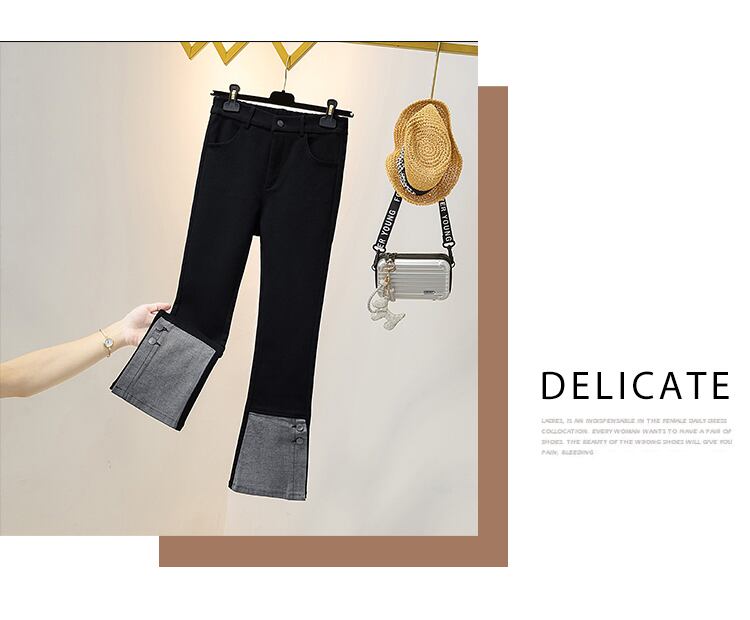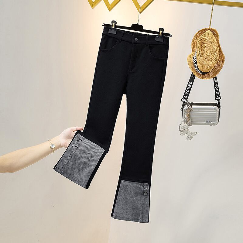 プラスサイズの婦人服 2023 ファットシスター春の新オールマッチ年齢引き下げハイウエスト弾性ストレートデニムステッチのズボンの女性 エラスティック 伸縮 大きめサイズ スプリング 春物 8884132026815048