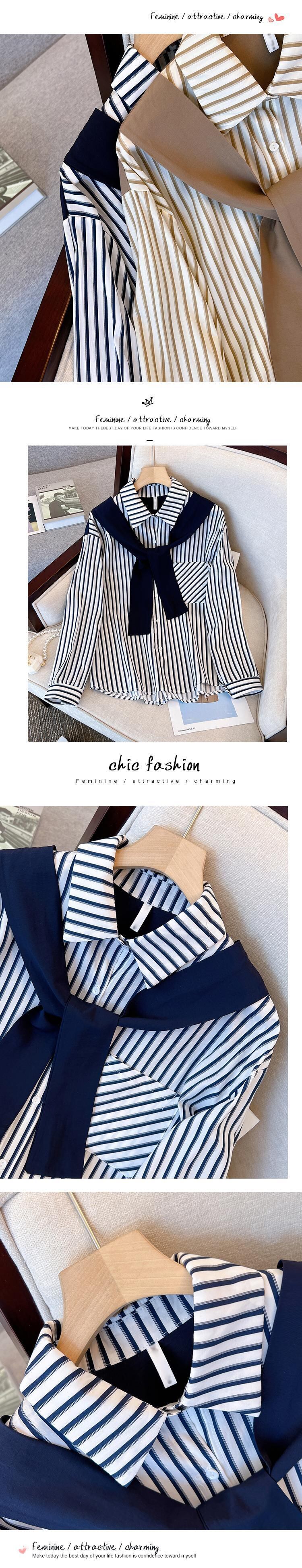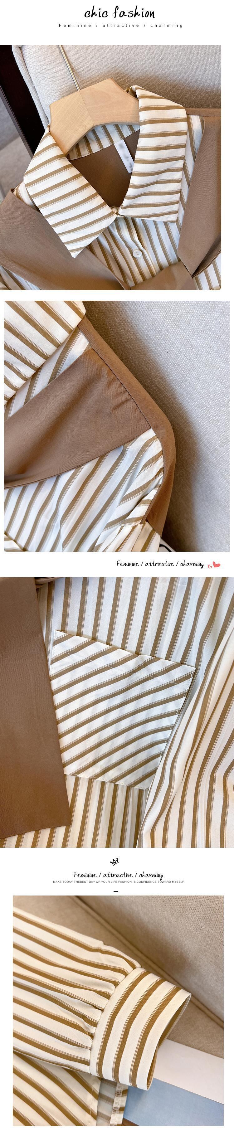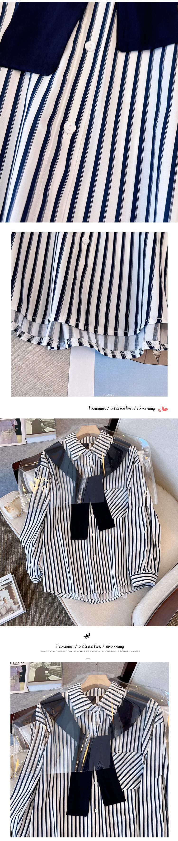 プラスサイズの婦人服 2023 ファットシスター春の新しいストライプのシャツは、薄い eign スタイルのファッションオールマッチトップの女性を示す股をカバーします 大きめサイズ スプリング 春物 8884187968971520