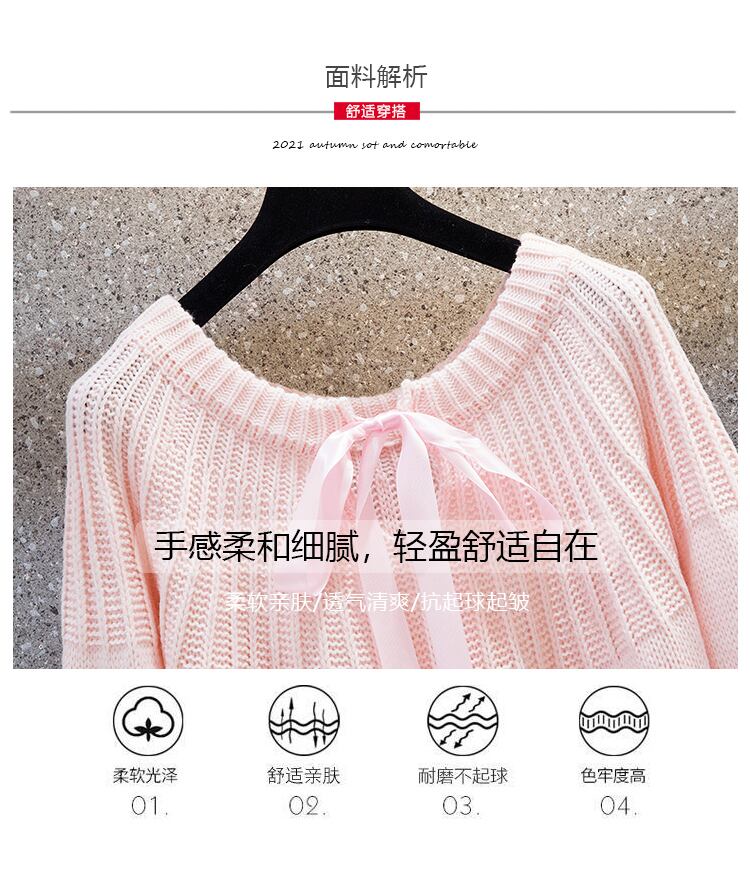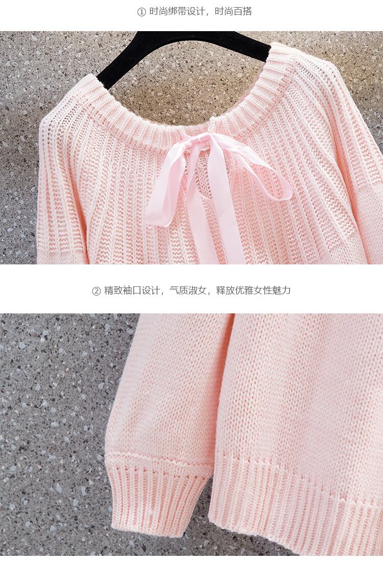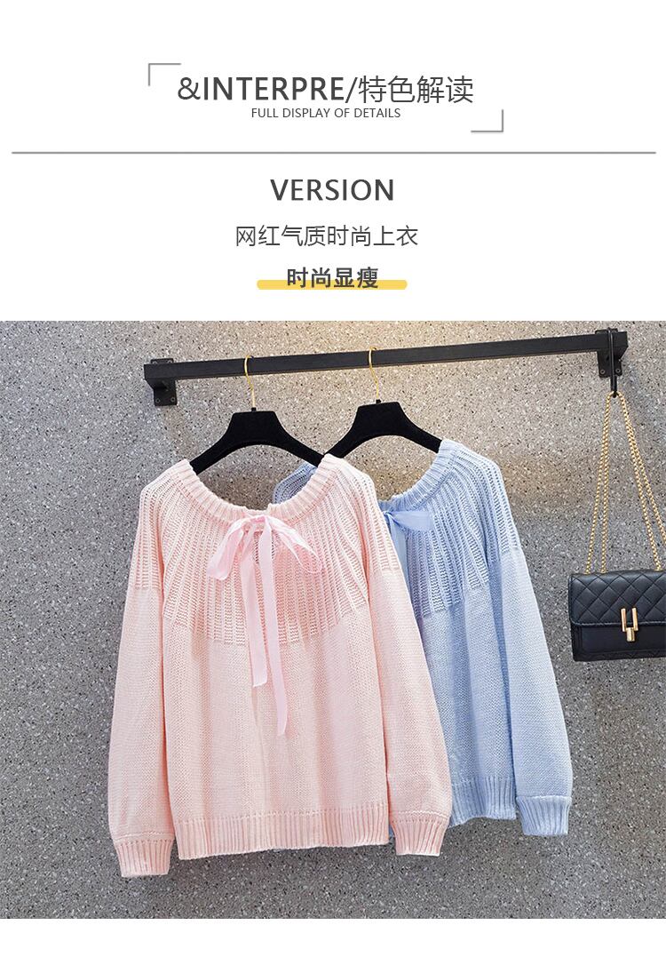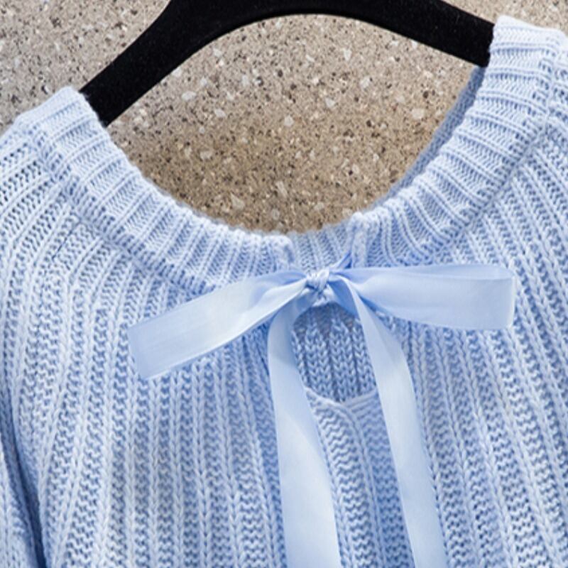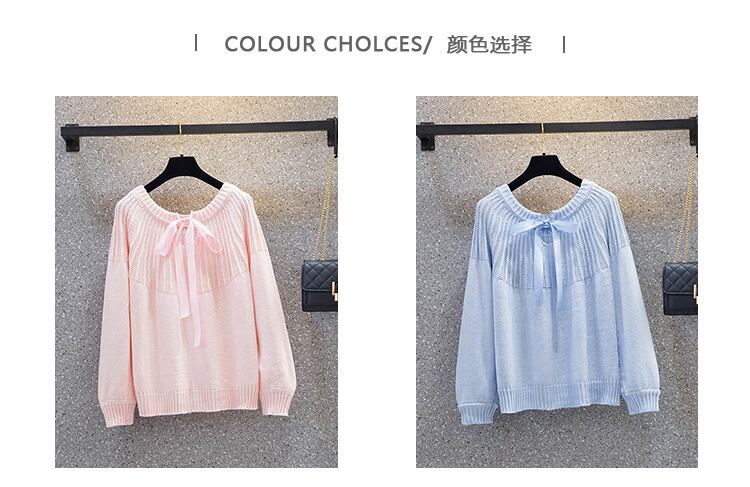 プラスサイズの婦人服 2022 冬の新しいファットシスターカジュアルランタンスリーブボウタイデザインニットセーター リボン 大きめサイズ ウィンター 冬物 8884189852662686