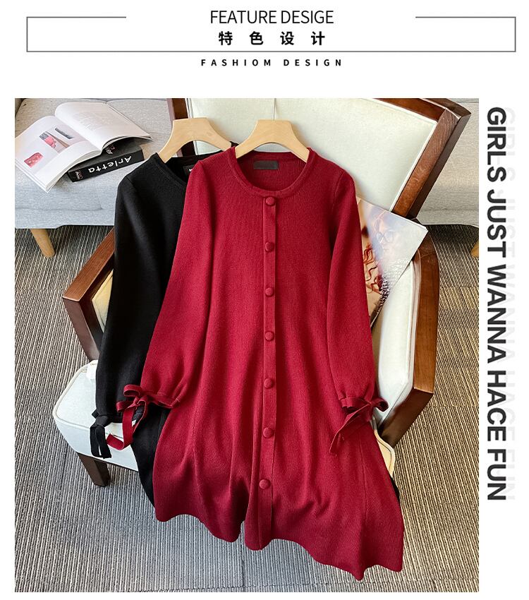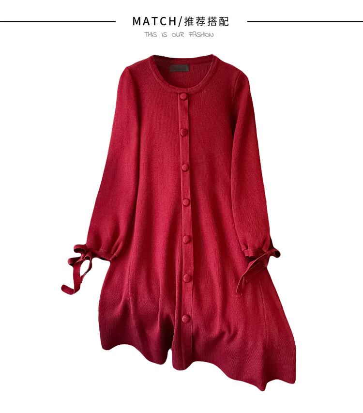プラスサイズの婦人服2022冬の新しいファットシスターフレンチスタイルの年齢を減らすミッドレングスのニットドレスは、お腹を覆い、薄く見えます 大きめサイズ ウィンター 冬物 8884190043130025