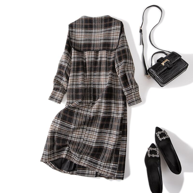 プラスサイズの婦人服 2023 ファットシスター春の新ファッションライト高級スタイル薄いチェック柄ミッドレングスのトレンチコートの女性 大きめサイズ スプリング 春物 8884174464469701