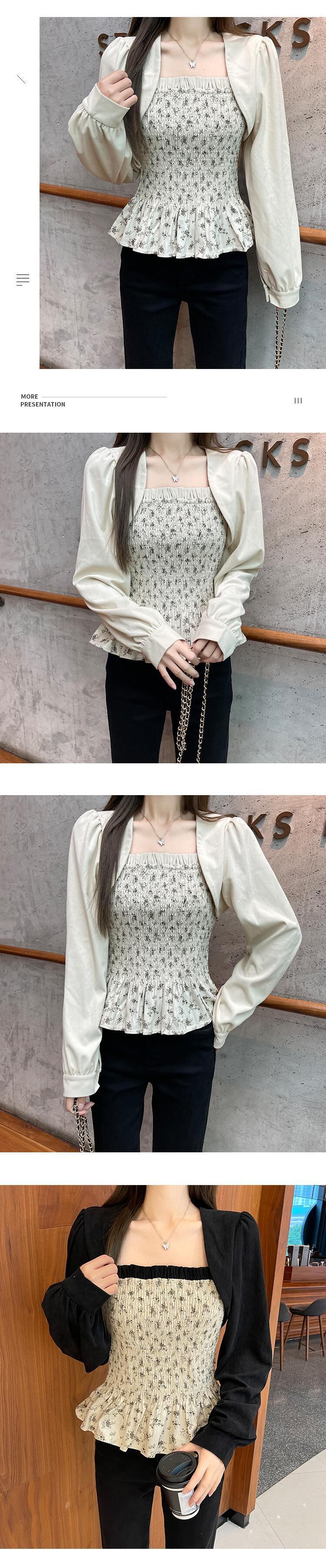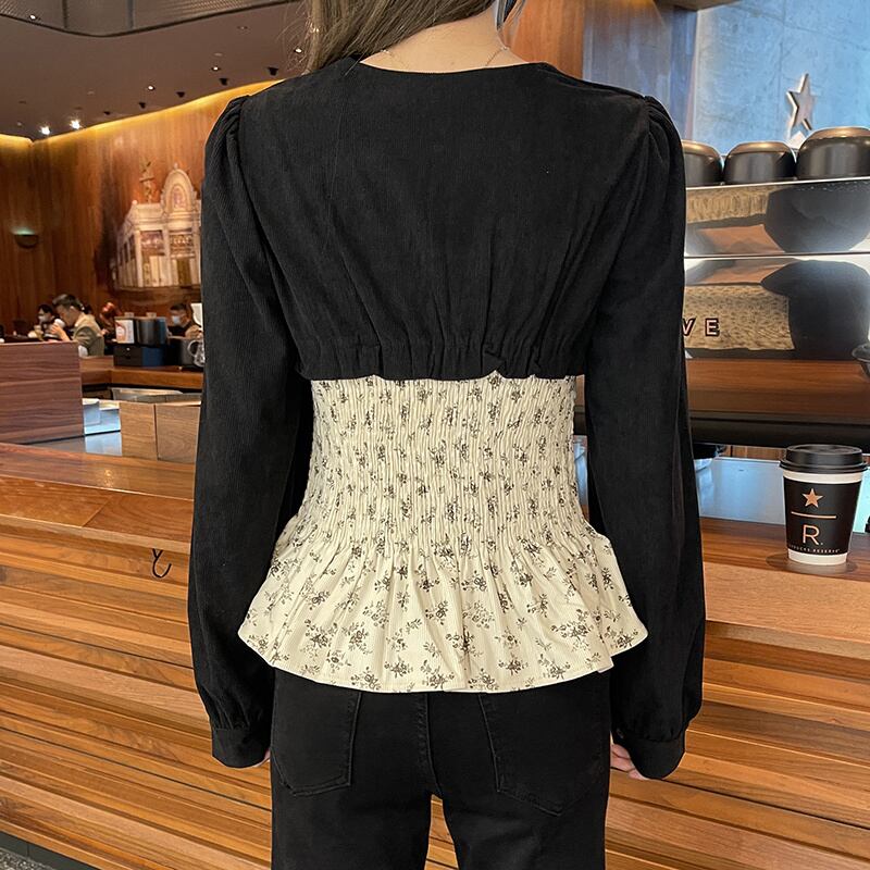 プラスサイズの婦人服 2023 太った姉妹春の新しい自己修養フェイク ツーピース シャツ スプライシング プリーツ花柄オールマッチ トップ 大きめサイズ スプリング 春物 8884153994040043