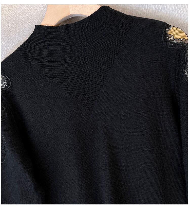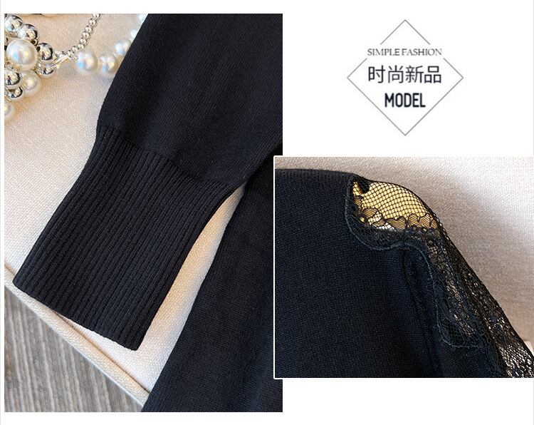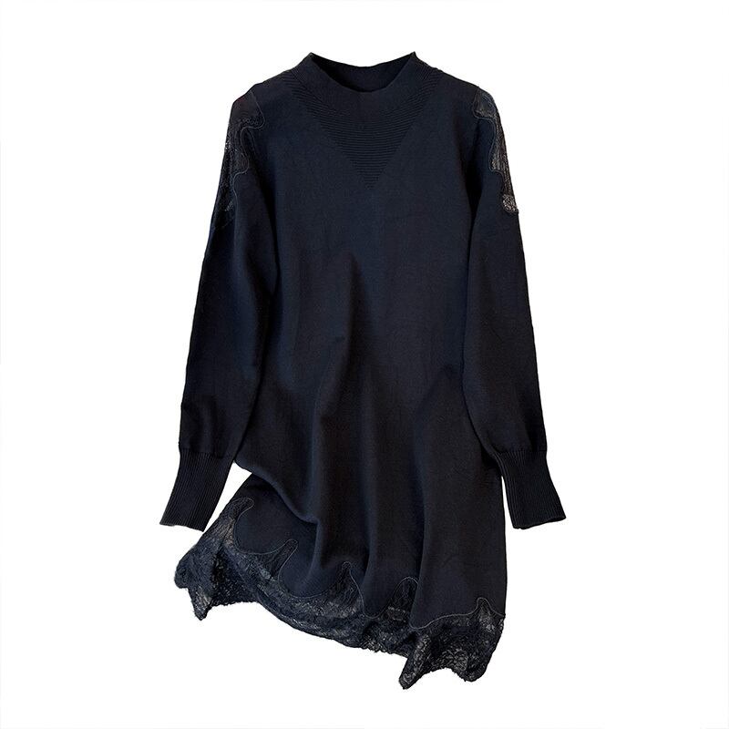 プラスサイズの婦人服 2023 ファットシスター春の新ミッドレングス長袖レースステッチ底入れニットドレス女性 ロング 大きめサイズ スプリング 春物 8884171663134852