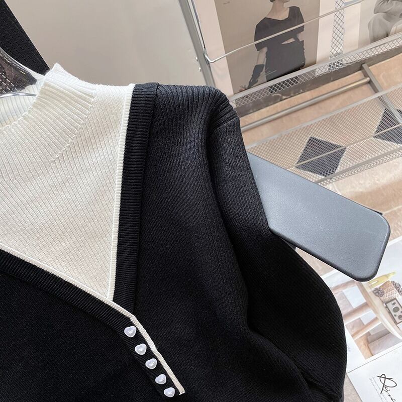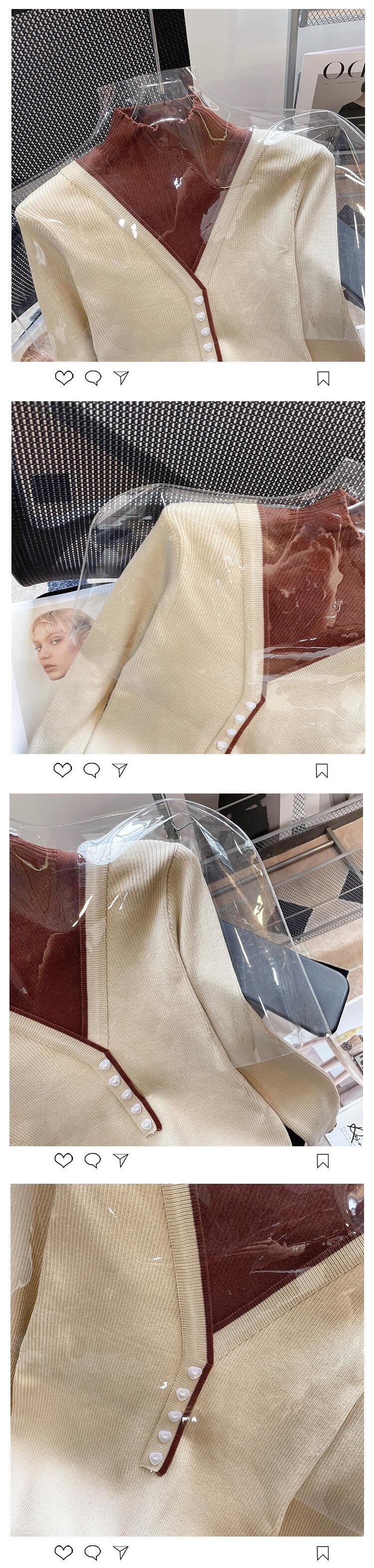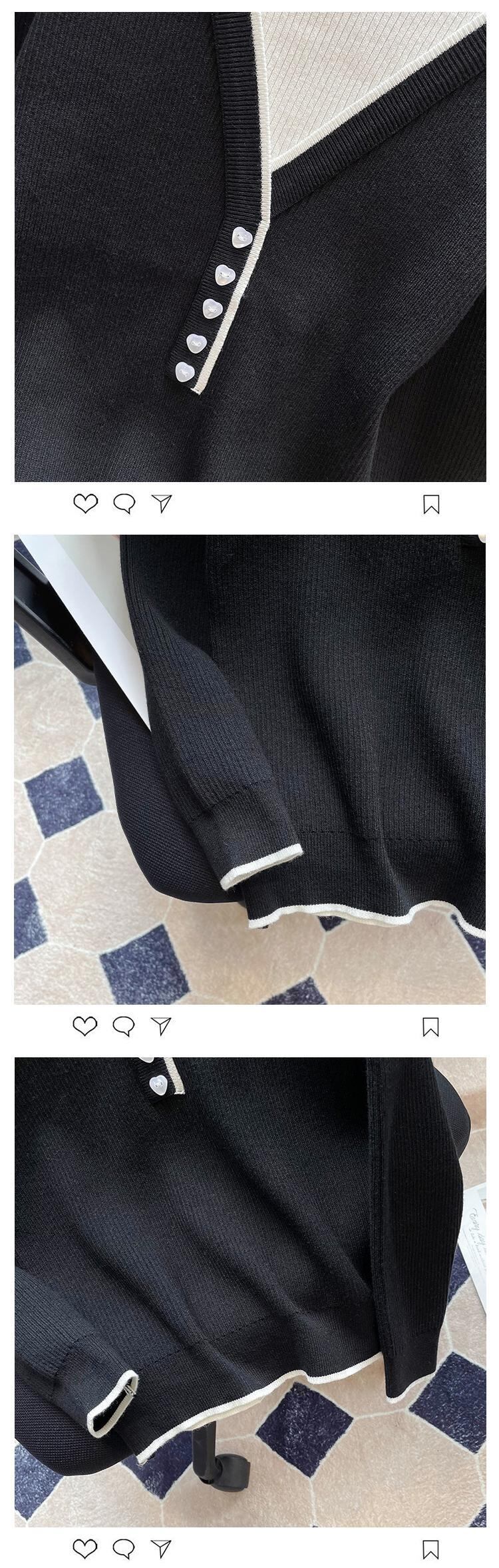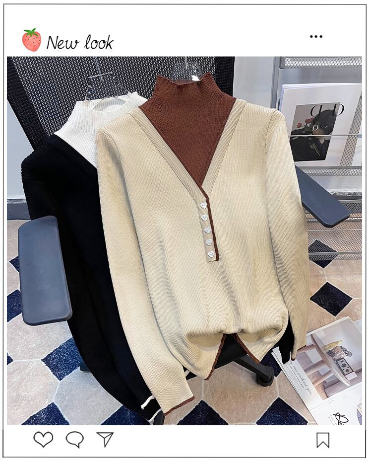 プラスサイズの婦人服 2023 トレンディな女性の春の新しいファットシスタージッパーセーター V ネックの配色長袖スリムセーター ロング 大きめサイズ スプリング 春物 Vネック 8884122319831789