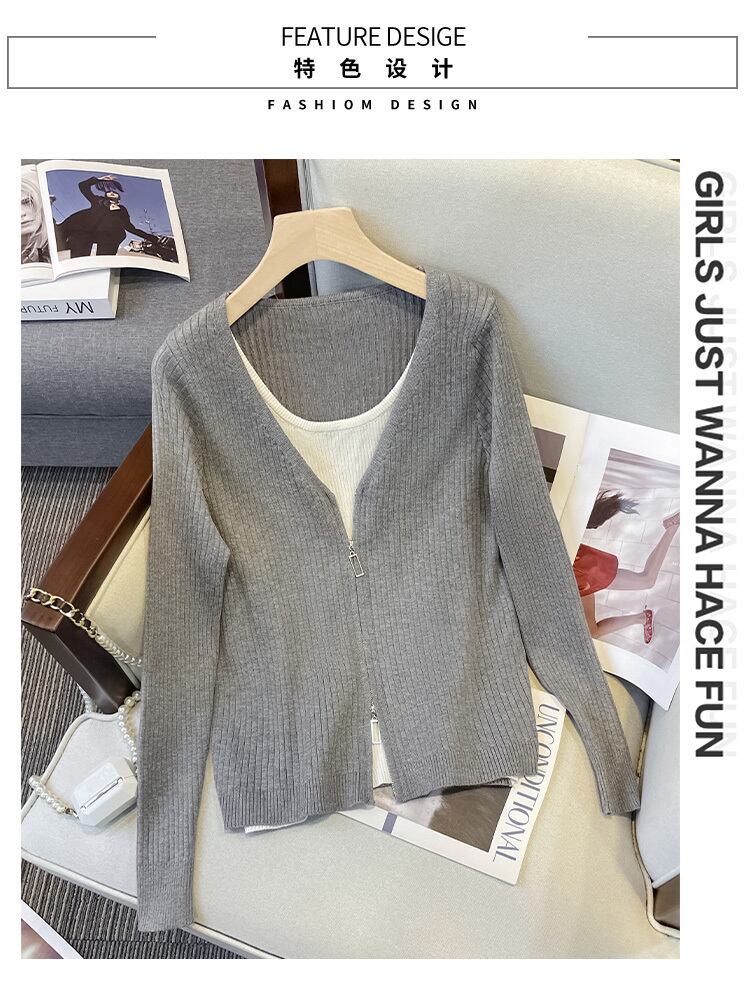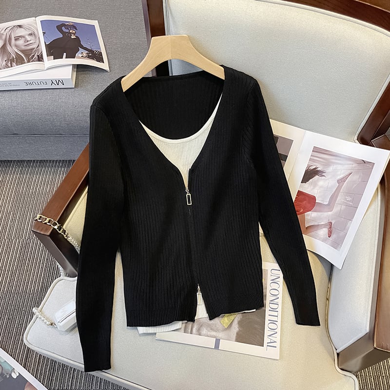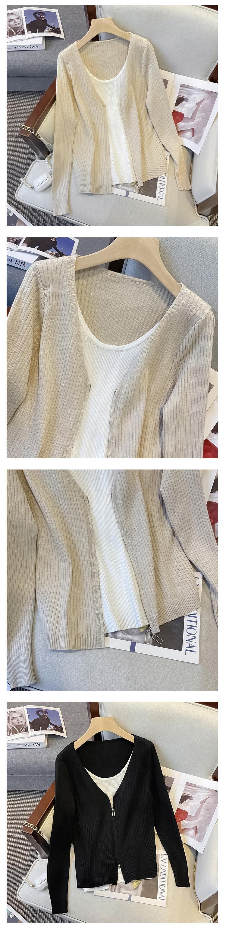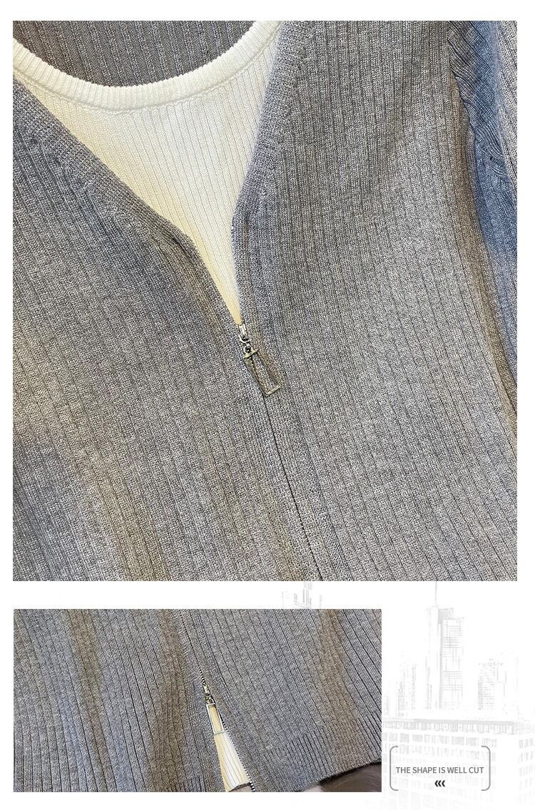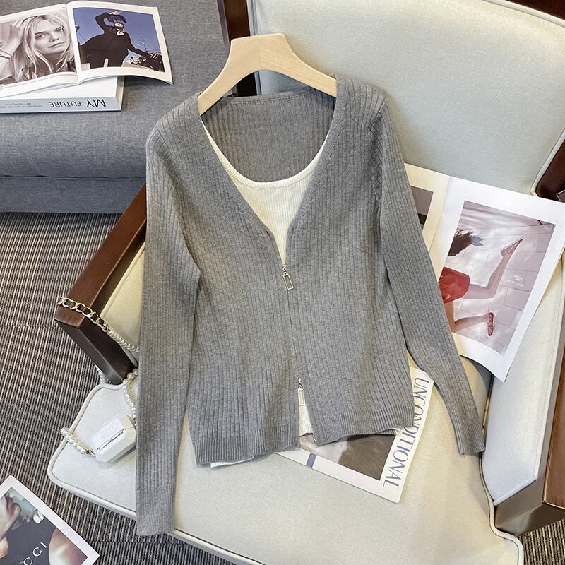 プラスサイズの婦人服 2023 春の新しいファットシスター eign スタイル偽ツーピーススプライシング緩いオールマッチニットボトムシャツ女性 大きめサイズ スプリング 春物 888411007769138