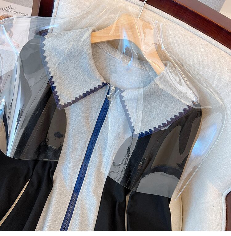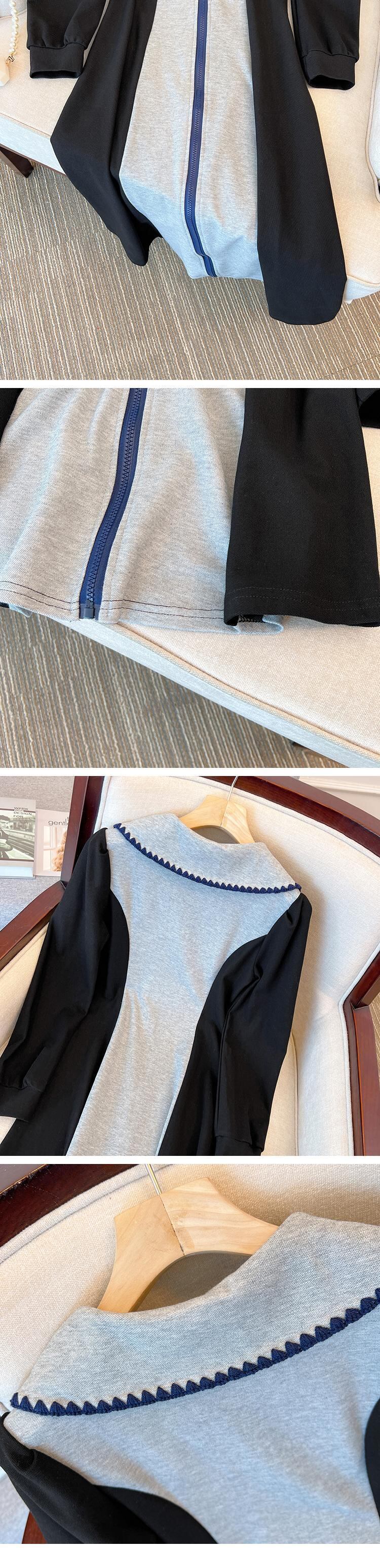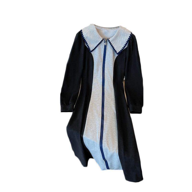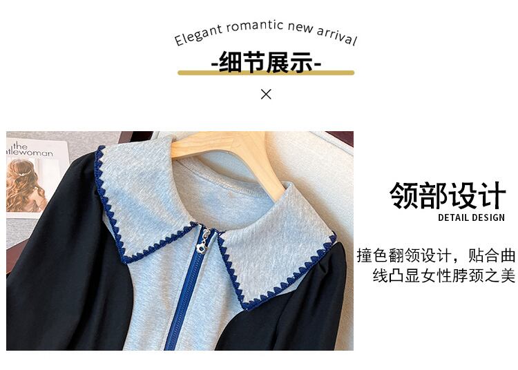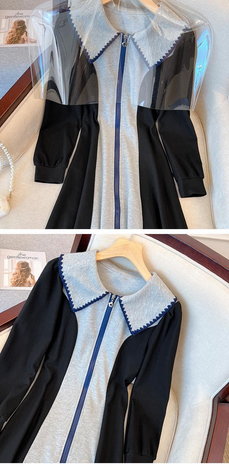 プラスサイズの婦人服 2023 春の新しいスタイルのファットシスターポロカラーデザインセンスコントラストカラージッパーウエストカバー肉ドレス 大きめサイズ スプリング 春物 8884140267459359