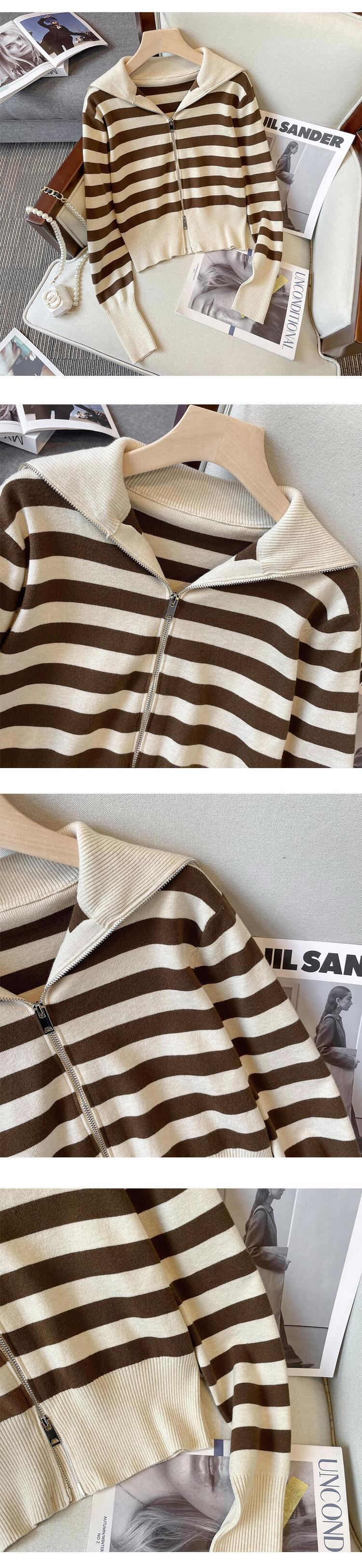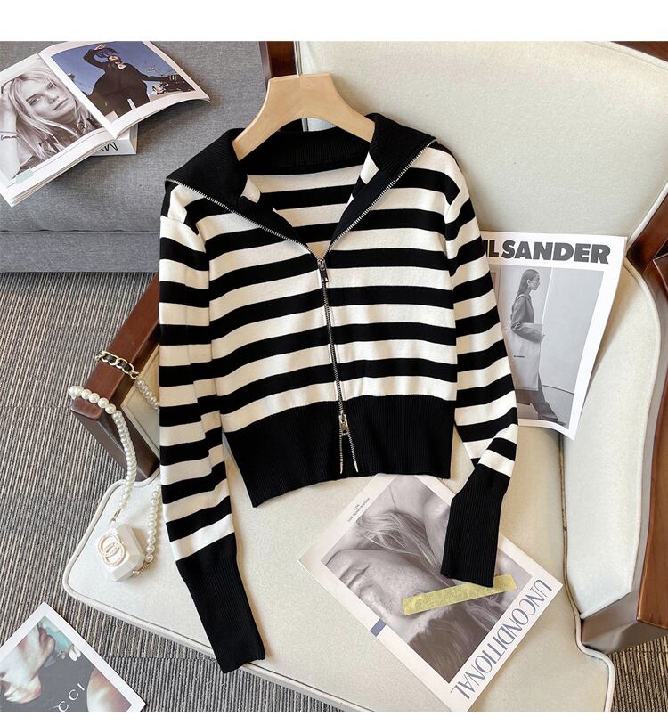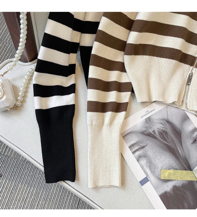 プラスサイズの婦人服 2023 春の新しいファットシスターストライプ薄型スリムカーディガンジッパーショートデザイントップ 大きめサイズ スプリング 春物 8884191395398940