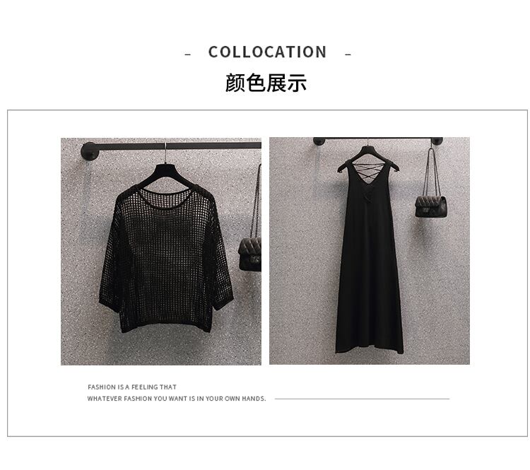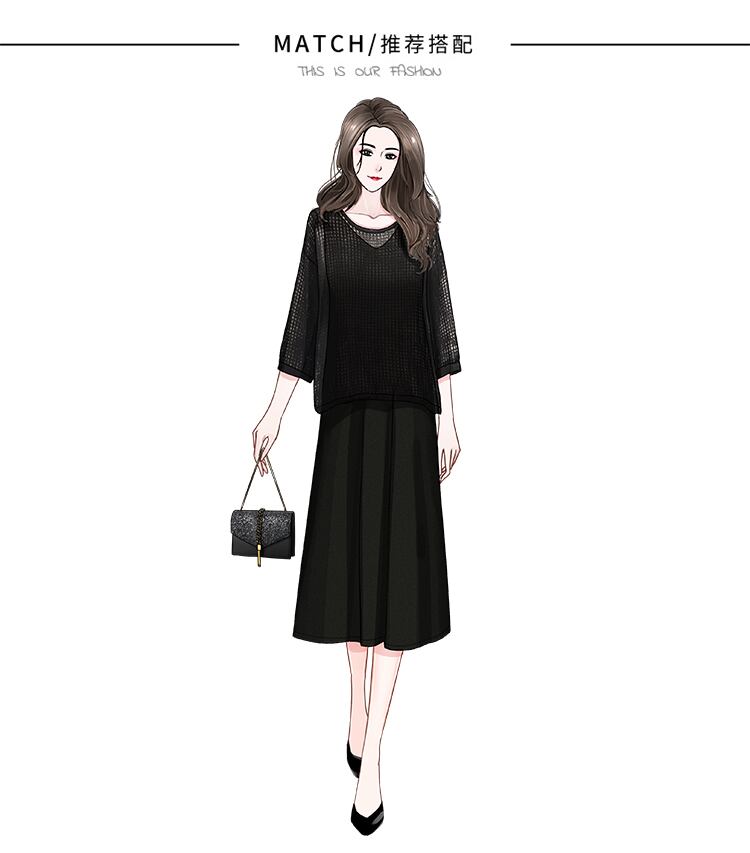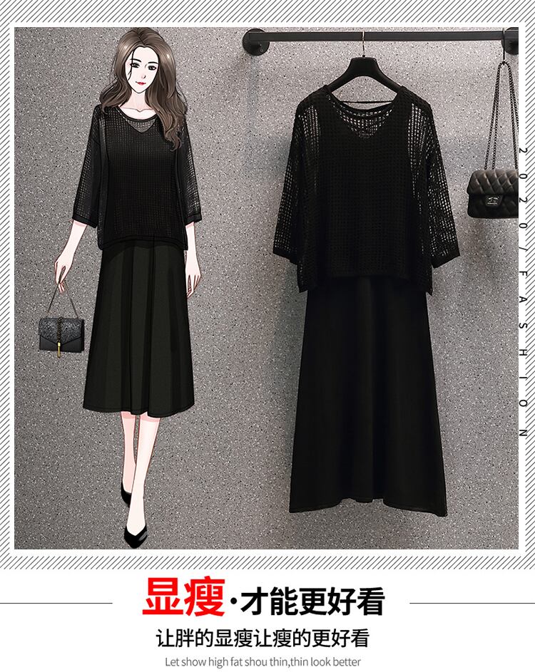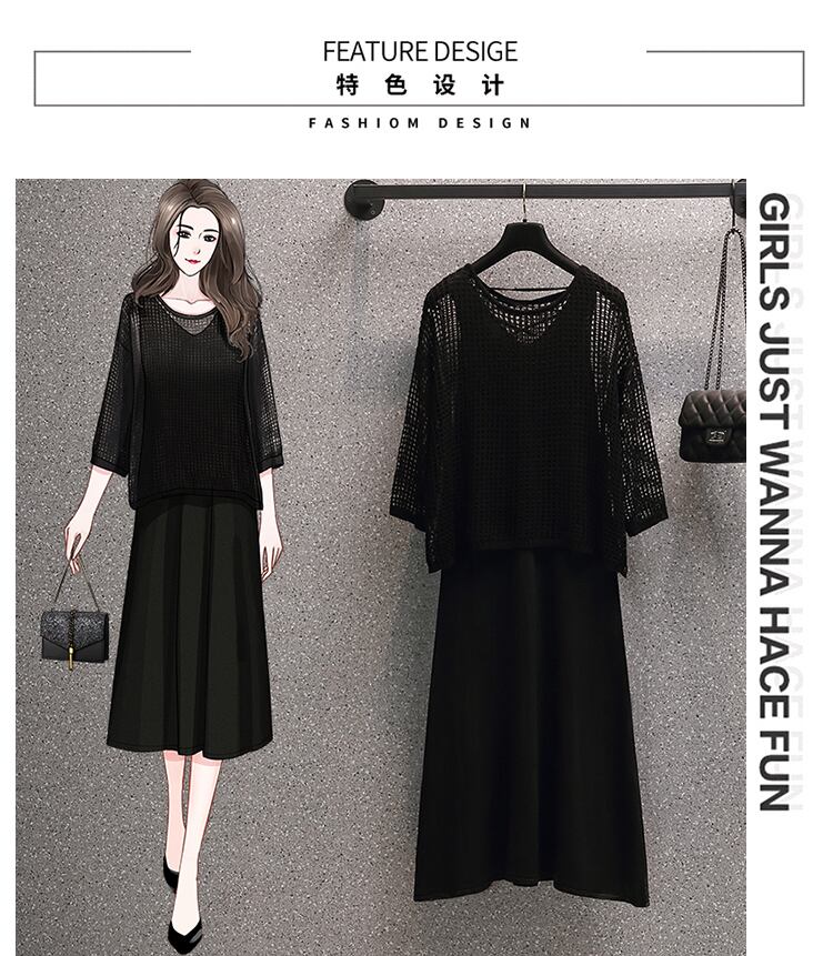大きいサイズの婦人服 2023 春服脂肪姉妹新しい薄い中空アウト ブラウス ニット サスペンダー スカート ツーピース スーツ 大きめサイズ スプリング 春物 8884142940288352