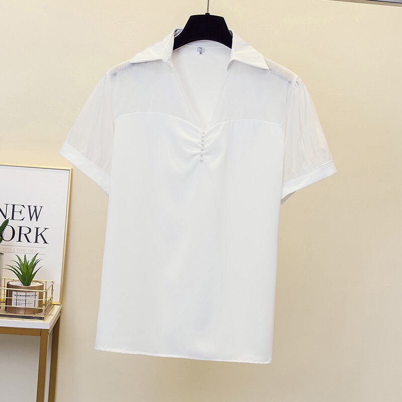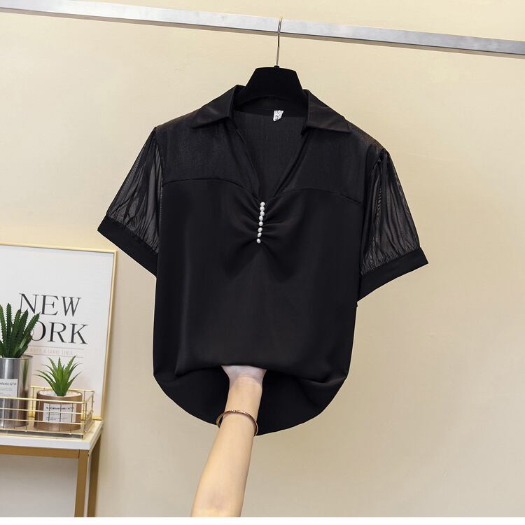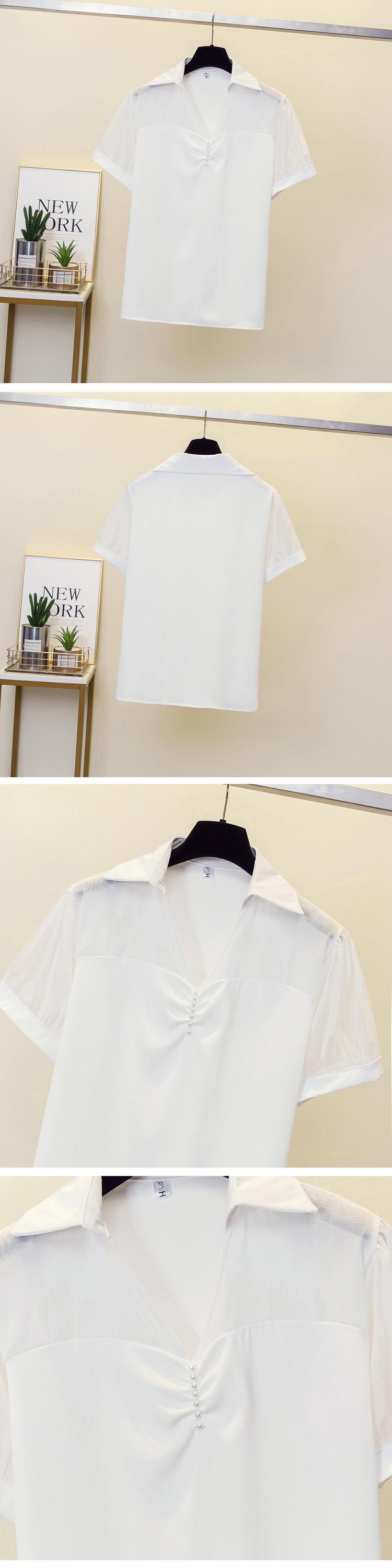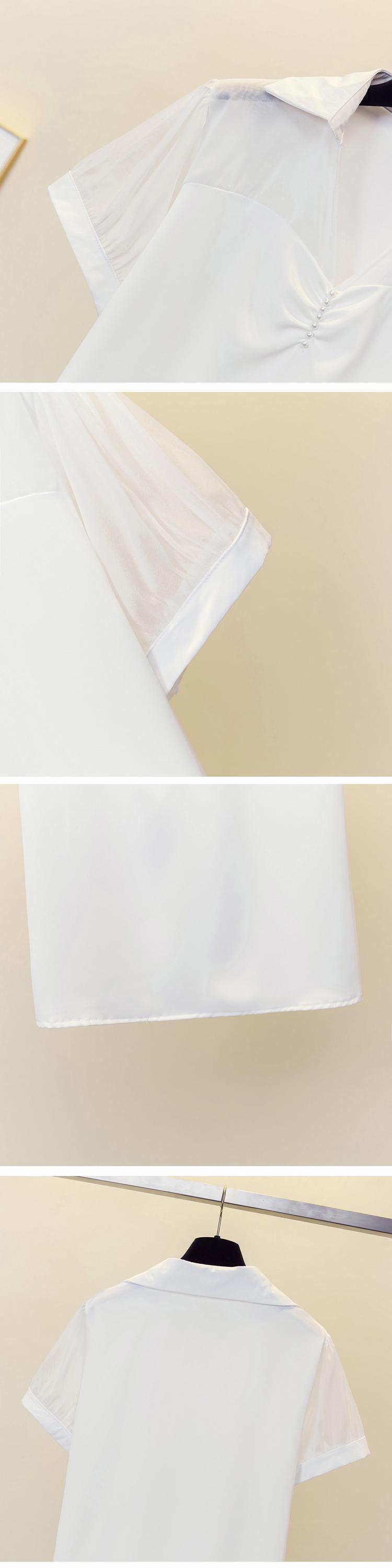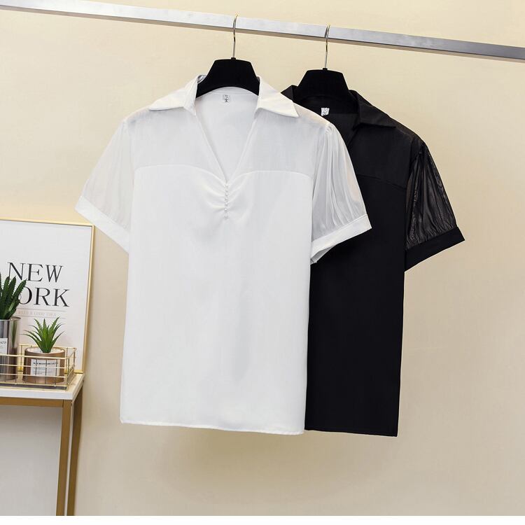 プラスサイズの婦人服 2023 夏の新しいファットシスタースプライシングメッシュ気質無地半袖シックな腹カバーシャツ 大きめサイズ サマー 夏物 ソリッドカラー 8884181783038089