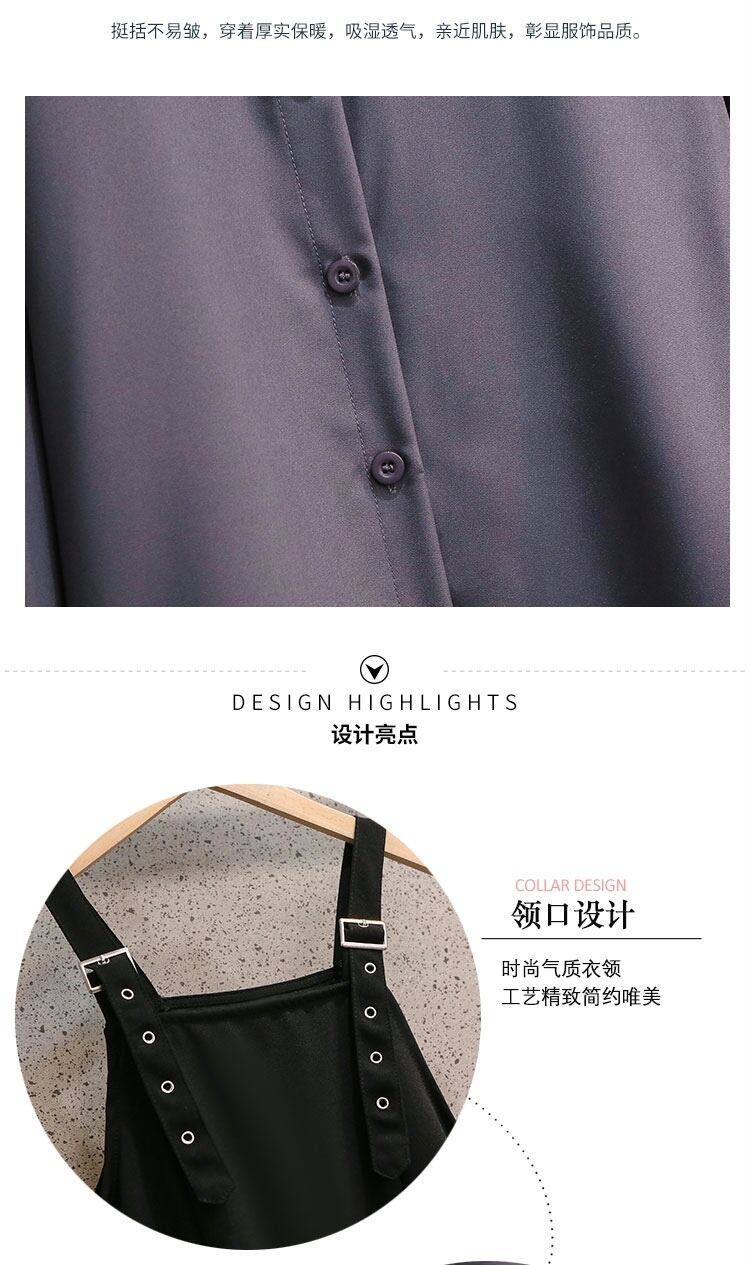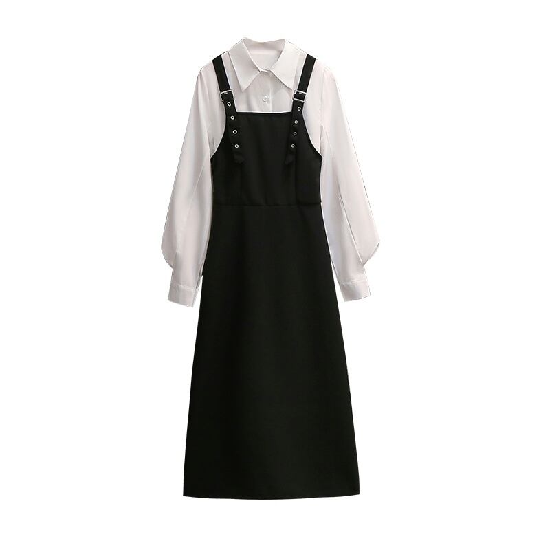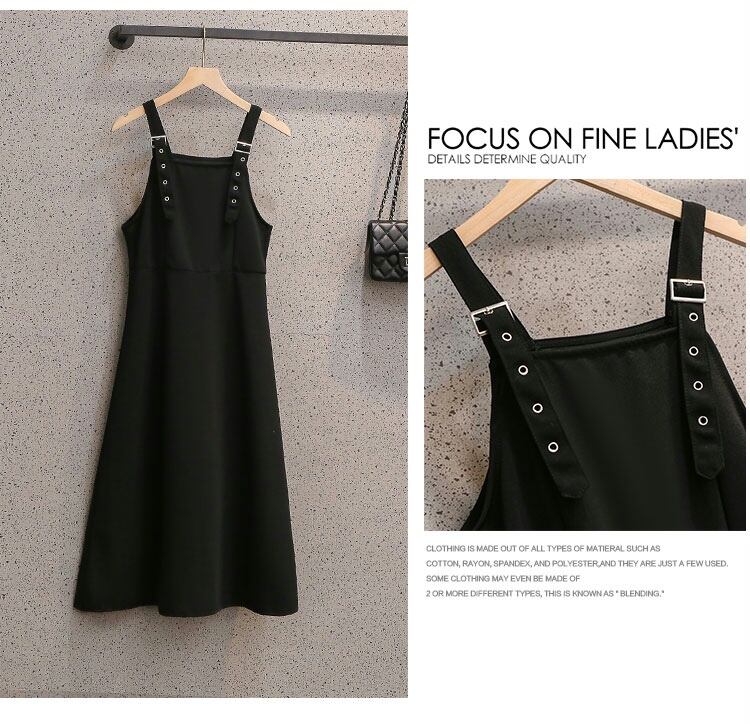 プラスサイズの婦人服 2023 脂肪姉妹春の新ファッションシャツカバー腹スリムドレスサスペンダースカート 2 点セット 大きめサイズ スプリング 春物 8884186994559786