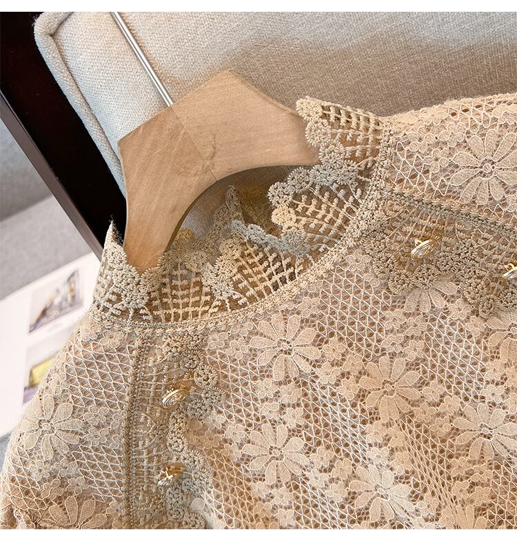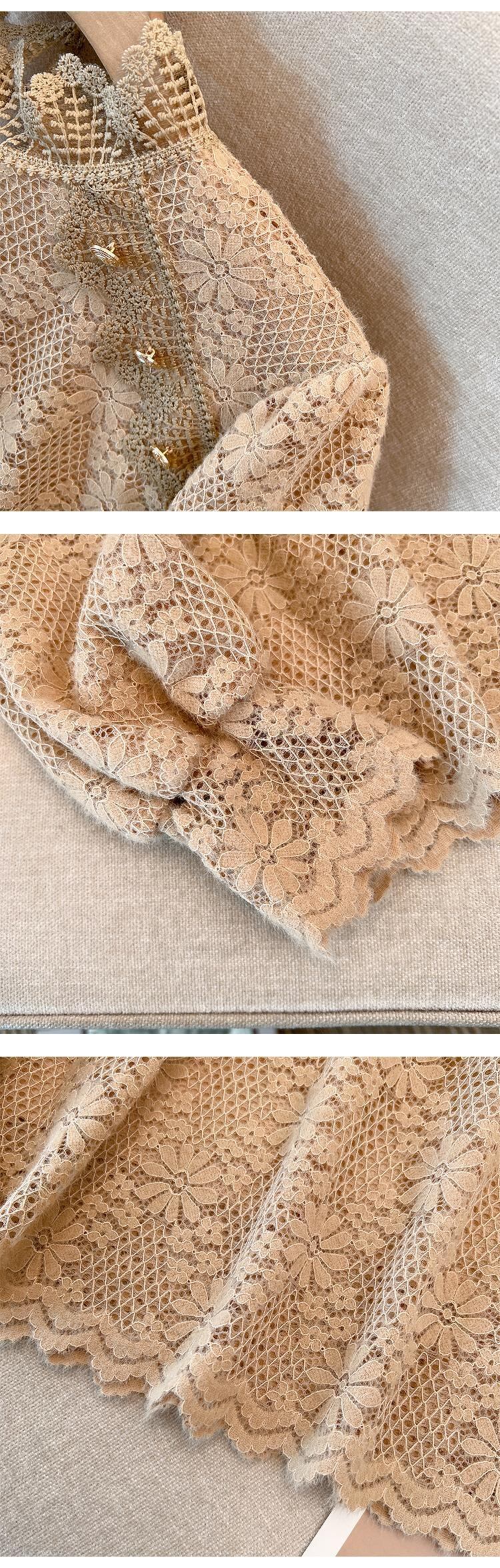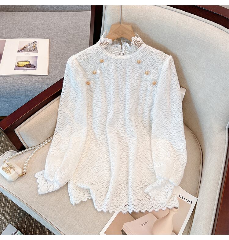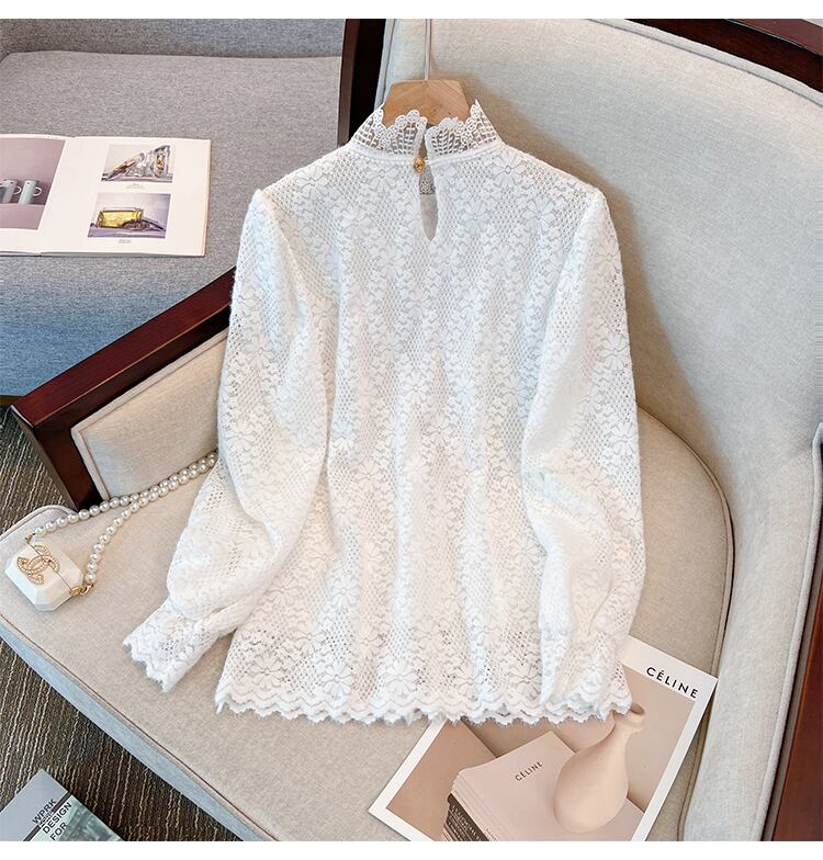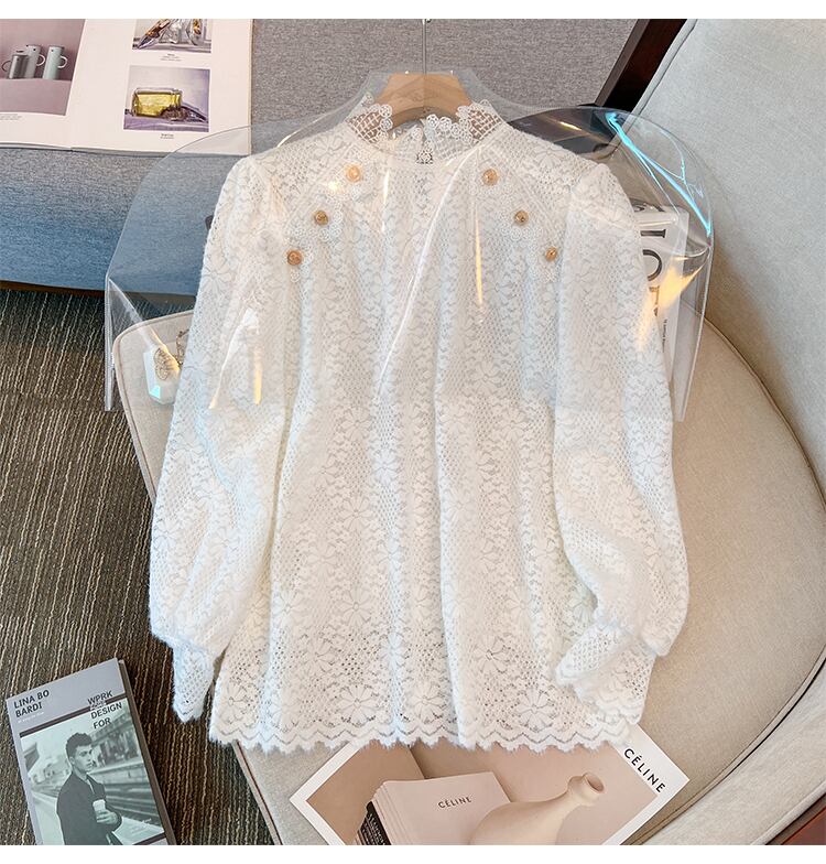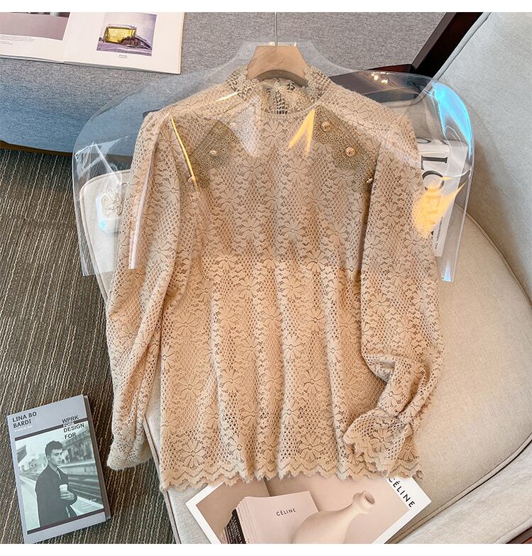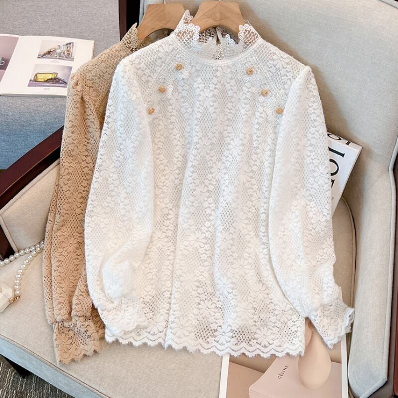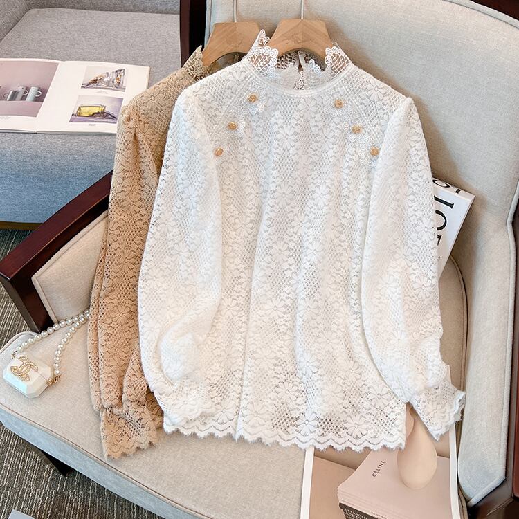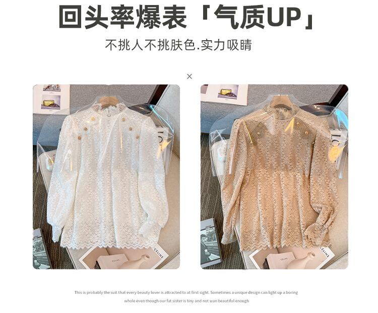 大きいサイズの婦人服 2023 春の新しいファットシスターレーススタンドカラーファッション年齢を減らすシックなカジュアルな長袖ボトムスシャツ ロング 大きめサイズ スプリング 春物 8884125612991119