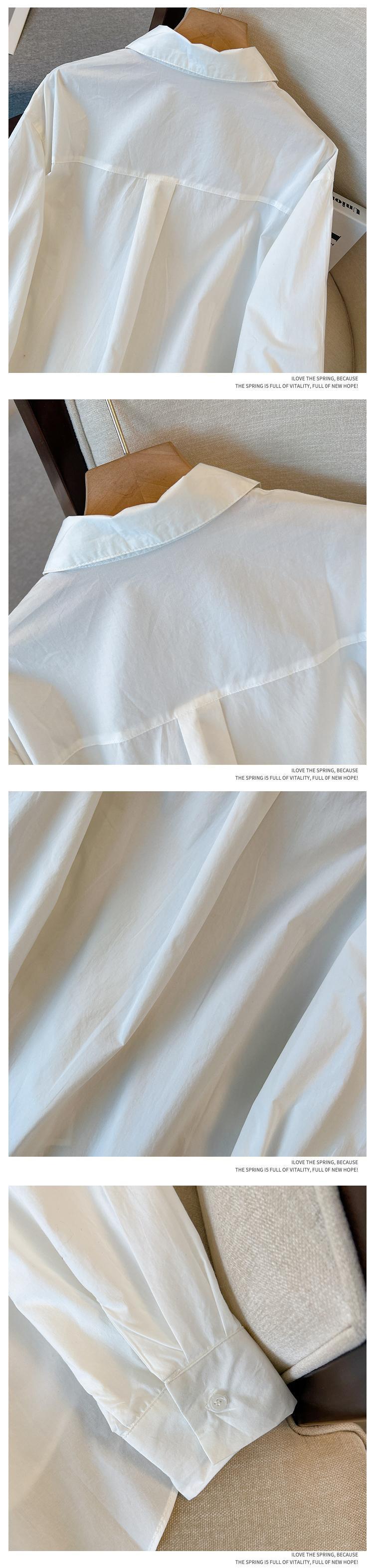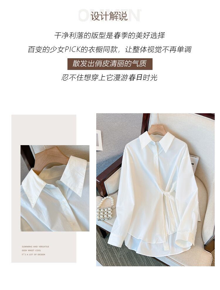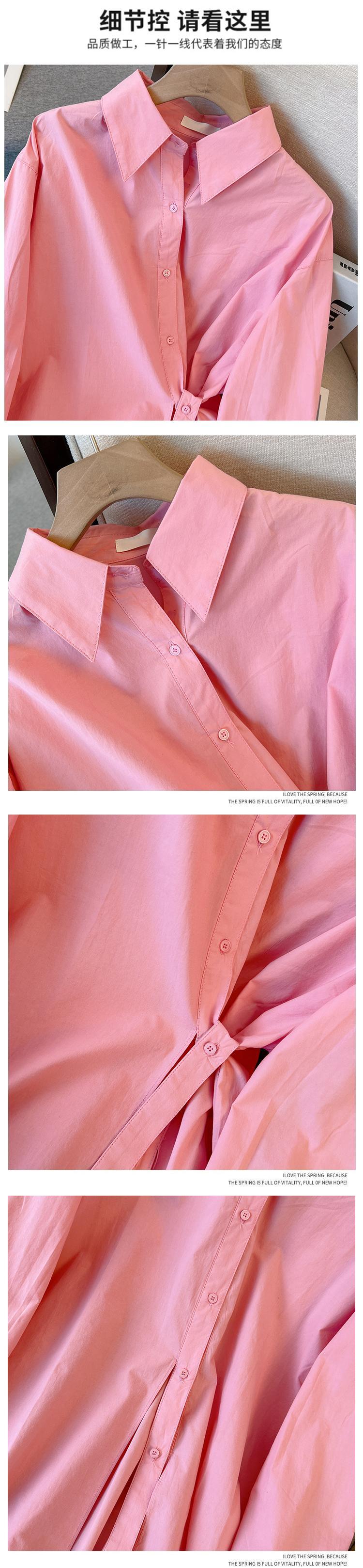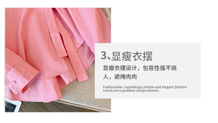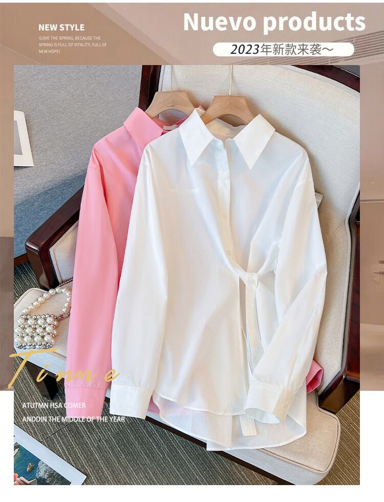 プラスサイズの婦人服 2023 ファットシスター春の新ファッション年齢減少オールマッチ薄い無地シンプルな長袖シャツ女性 ロング 大きめサイズ スプリング 春物 ソリッドカラー 8884110800339547