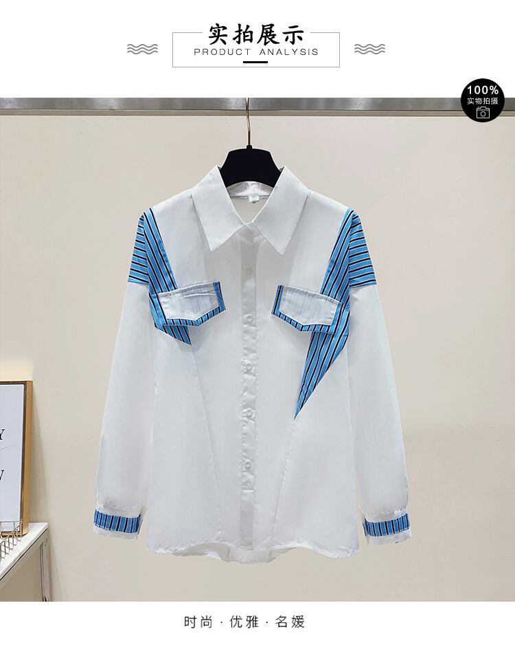 プラスサイズの婦人服2023春の新作シャツファットシスターズはヒップをカバーし、痩せて見えるスタイルのファッションオールマッチ長袖トップス女性 ロング 大きめサイズ スプリング 春物 888411218301046