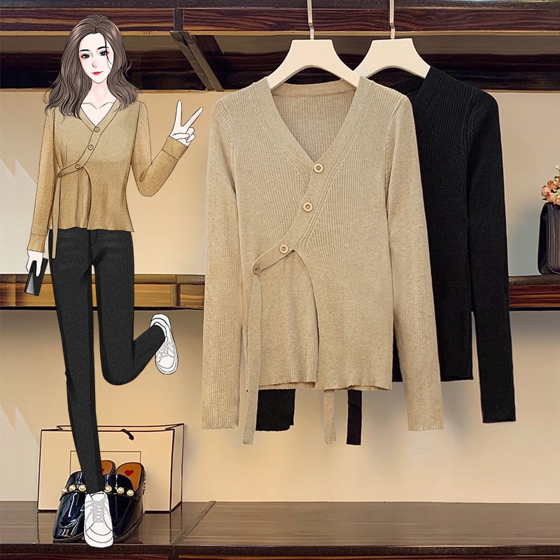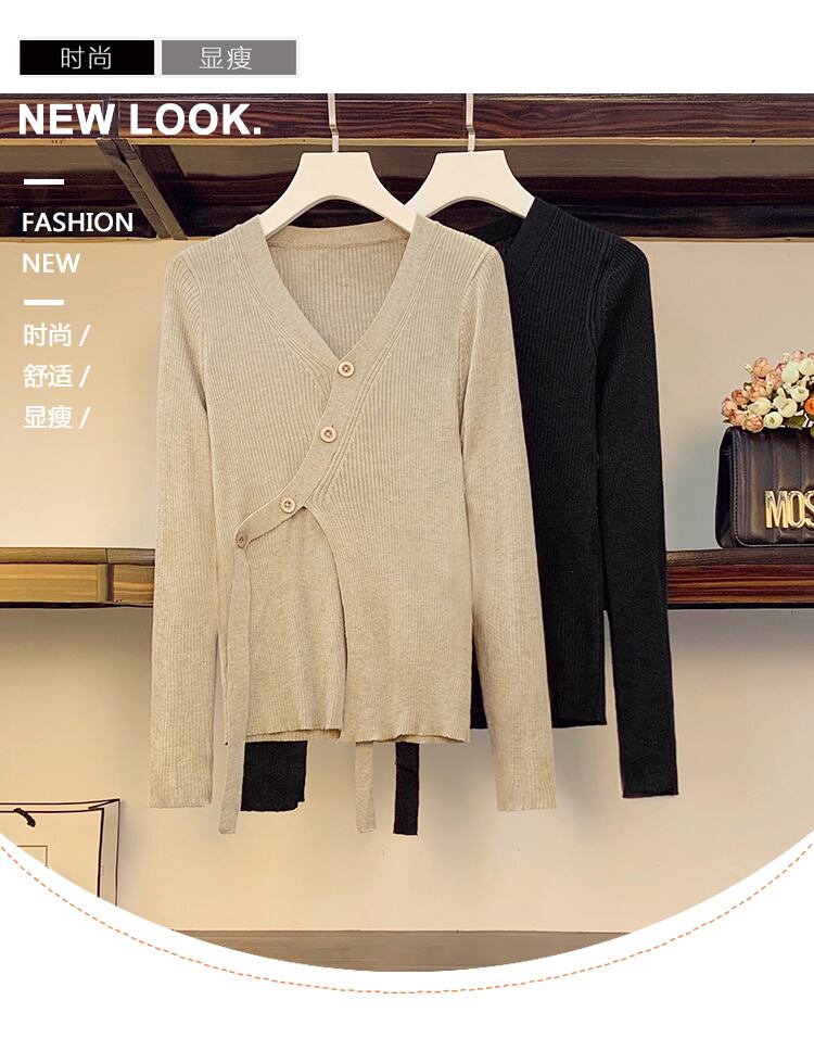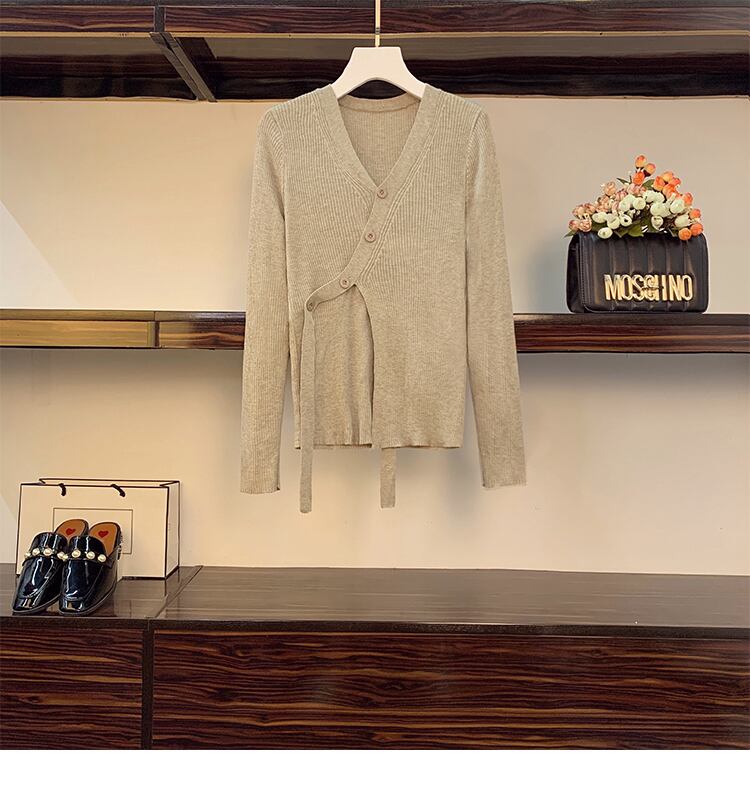 プラスサイズの婦人服 2023 ファットシスター春の新ファッション不規則なファインウールカーディガン薄いニットセータートップ 大きめサイズ スプリング 春物 8884121677204428