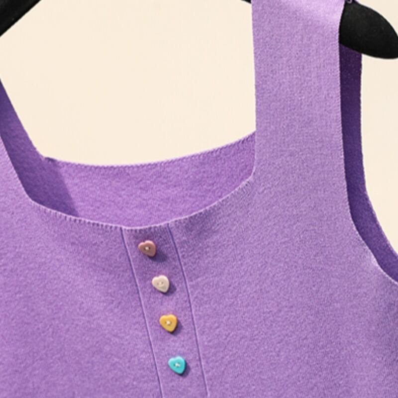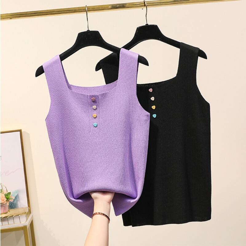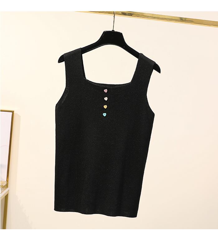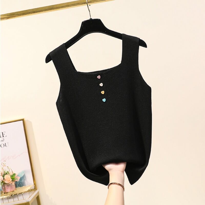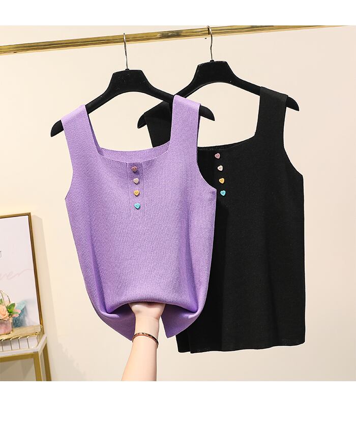 大きいサイズの婦人服 2023 トレンディな女性の夏の新しい脂肪姉妹ボタン無地ニット底入れ小さなキャミソールトレンディ割引 大きめサイズ サマー 夏物 ソリッドカラー 888416958481509
