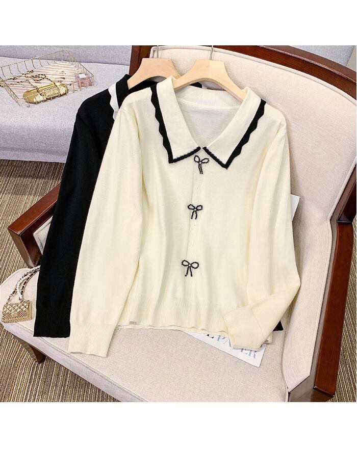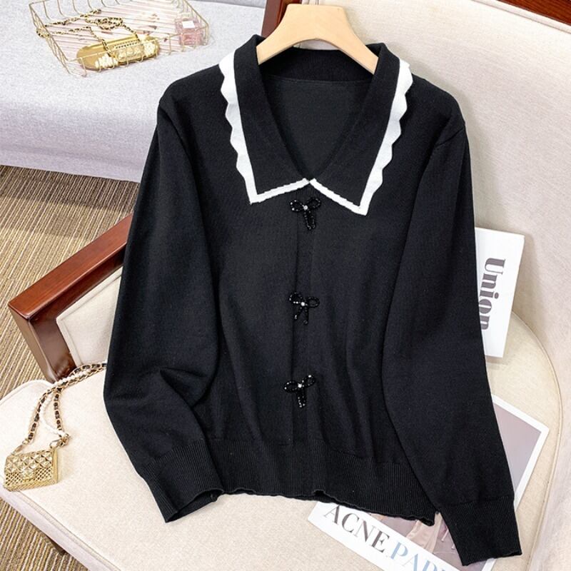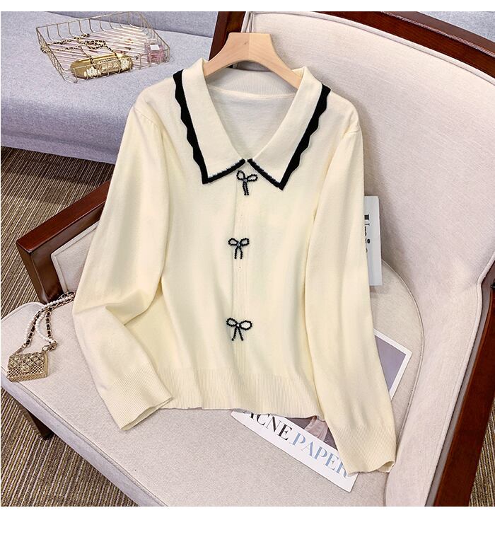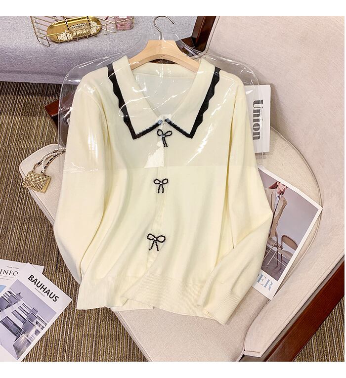 プラスサイズの婦人服 2023 トレンディな女性の春の新しい太った姉妹の人形の襟の長袖のちょう結びの長袖のゆったりとした薄いセーター ロング リボン 大きめサイズ スプリング 春物 8884168759264565