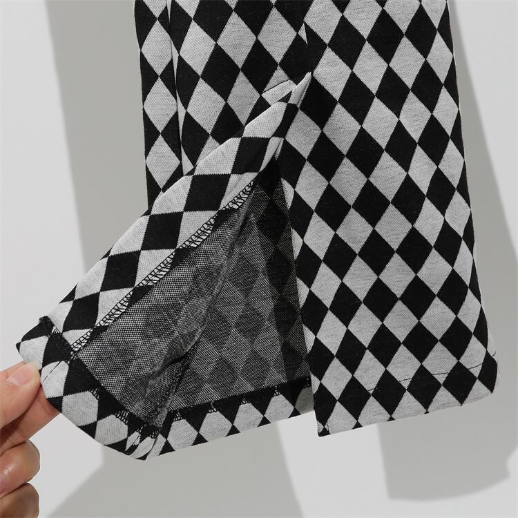 大きいサイズの婦人服 2023 春の新しいスタイルのファット シスター ファッション デザイン スリット菱形パターン eign エア ドレープ わずかにブーツカット パンツ 大きめサイズ スプリング 春物 8884121421130983