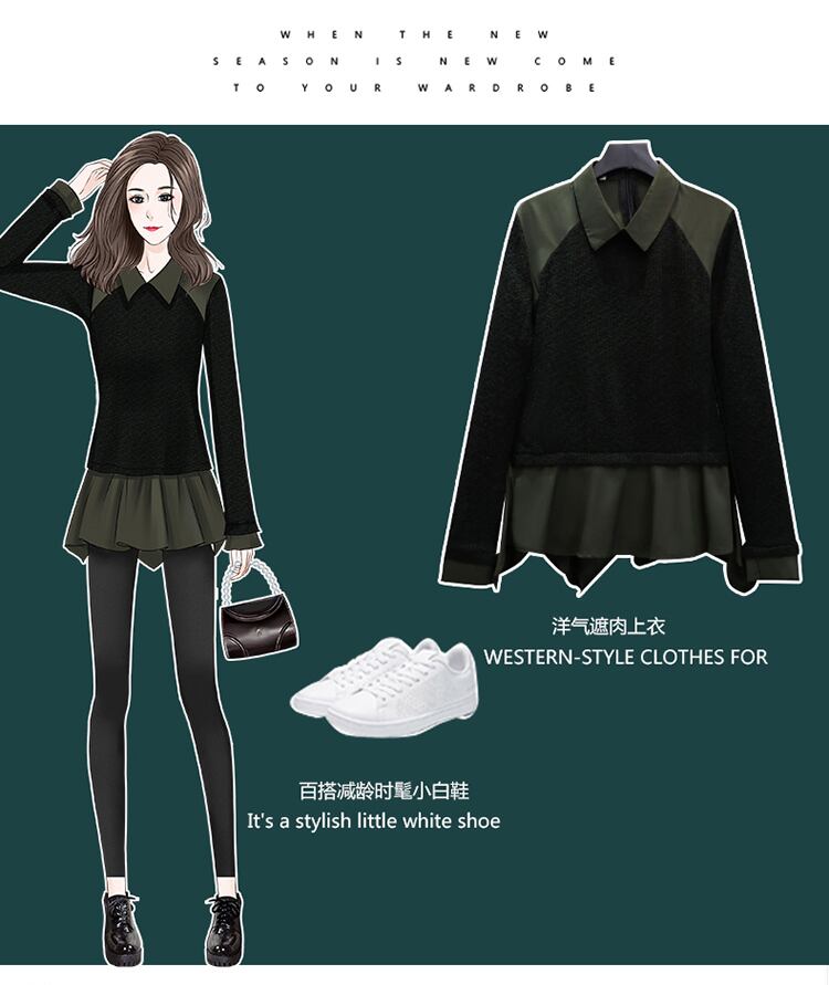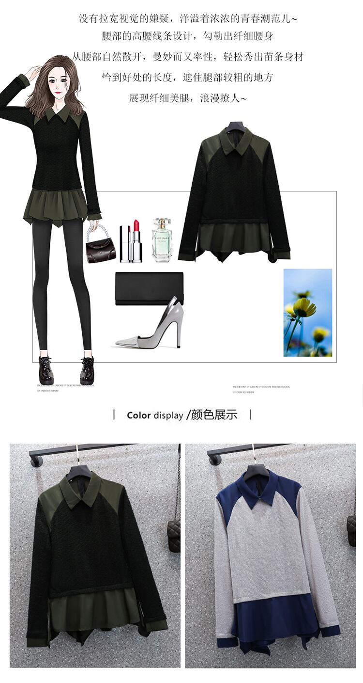 大きいサイズの婦人服 2023 トレンディな女性の春の新しいファット シスター ニット長袖フェイク ツーピース ウエスト ウエスト気質オールマッチ セーター ロング 大きめサイズ スプリング 春物 8884167319195521