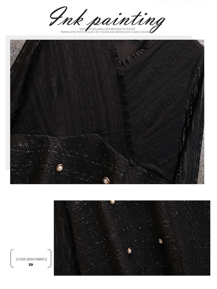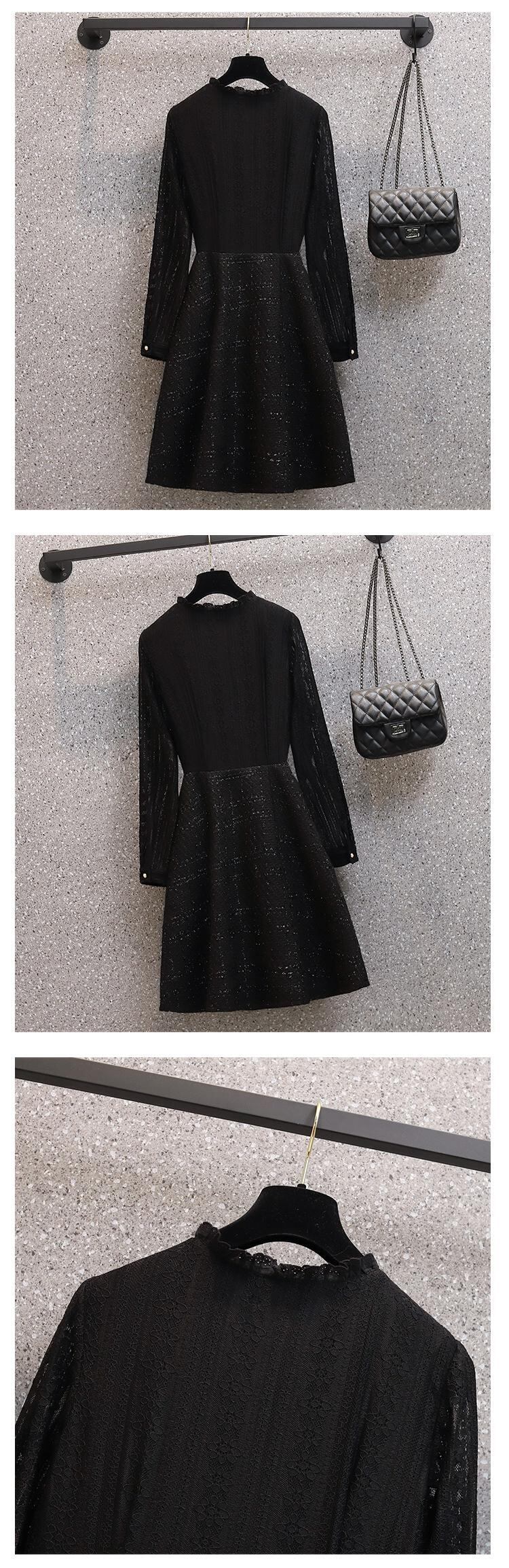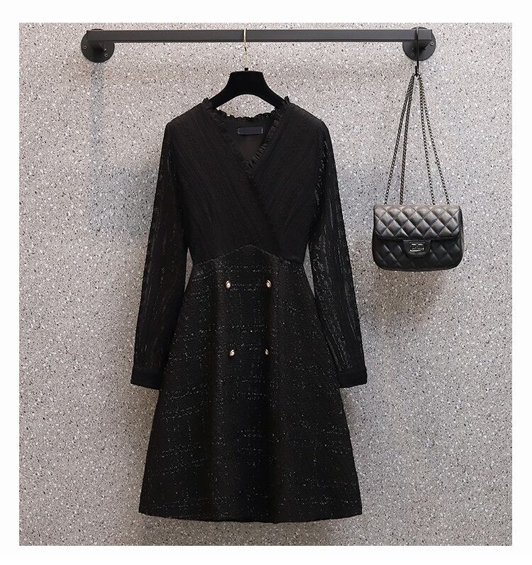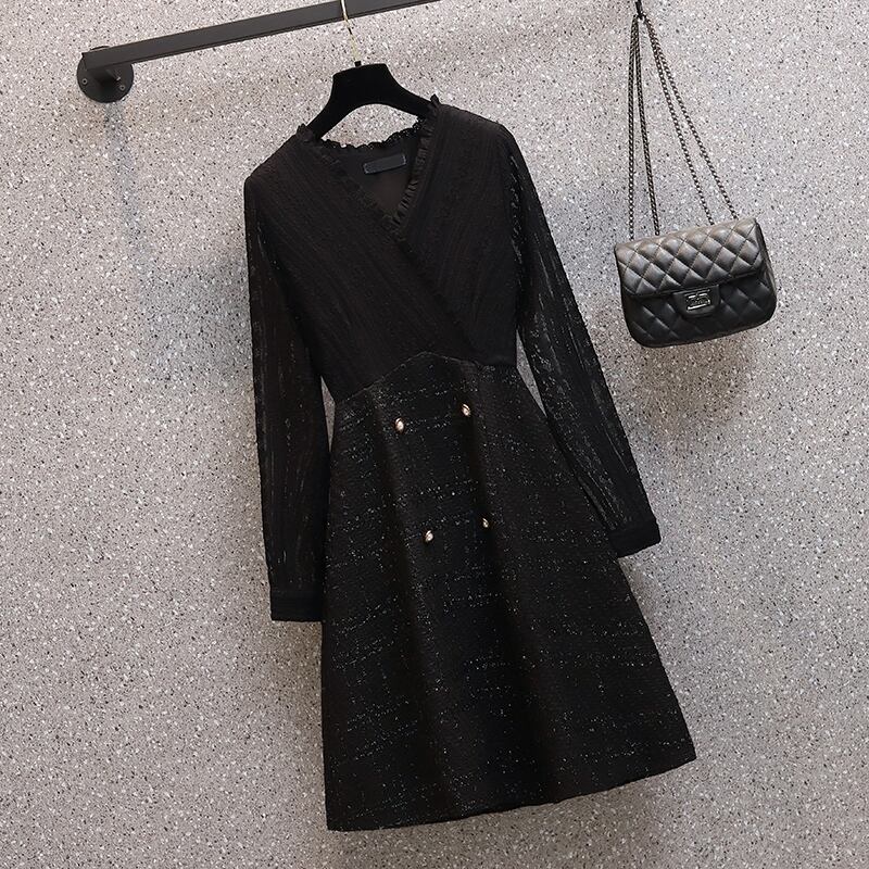 2023 春の新ウエストウエスト気質無地ミッドレングススカートプラスサイズの女性のオールマッチラウンドネック肉を覆うドレス潮 大きめサイズ スプリング 春物 Oネック ソリッドカラー 8884196040495468
