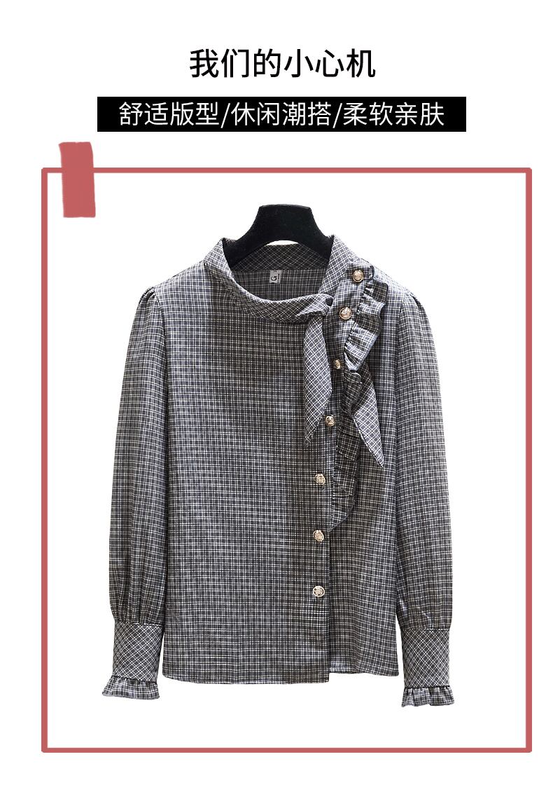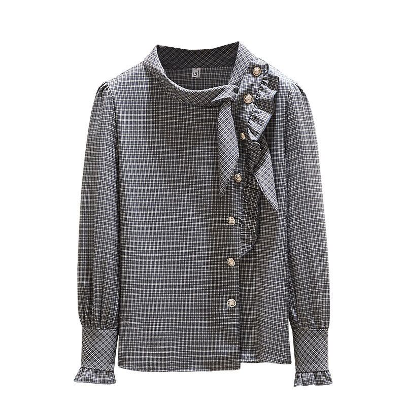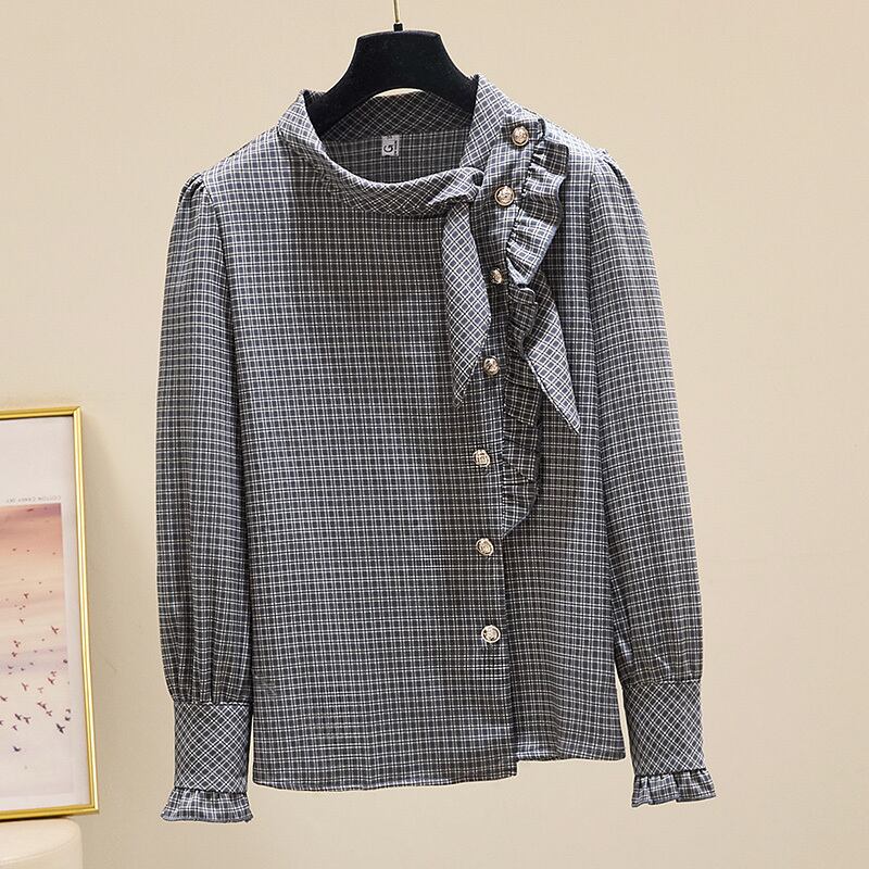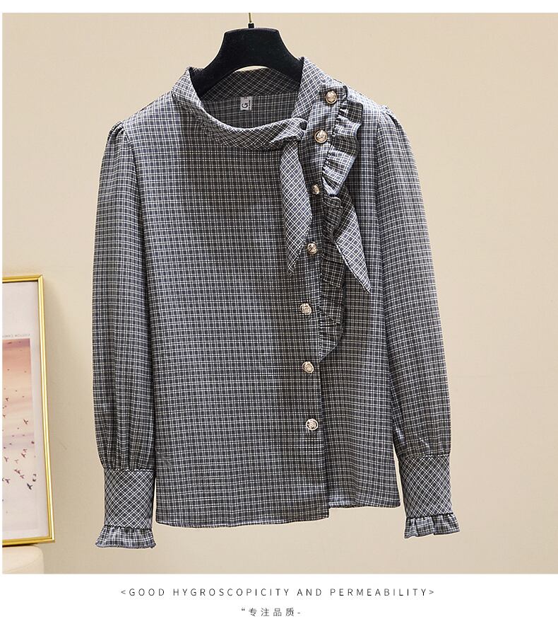 プラスサイズの婦人服 2023 ファットシスター春の新チェック柄シャツデザインセンスニッチパフスリーブ長袖トップ女性 ロング 大きめサイズ スプリング 春物 8884128212678245