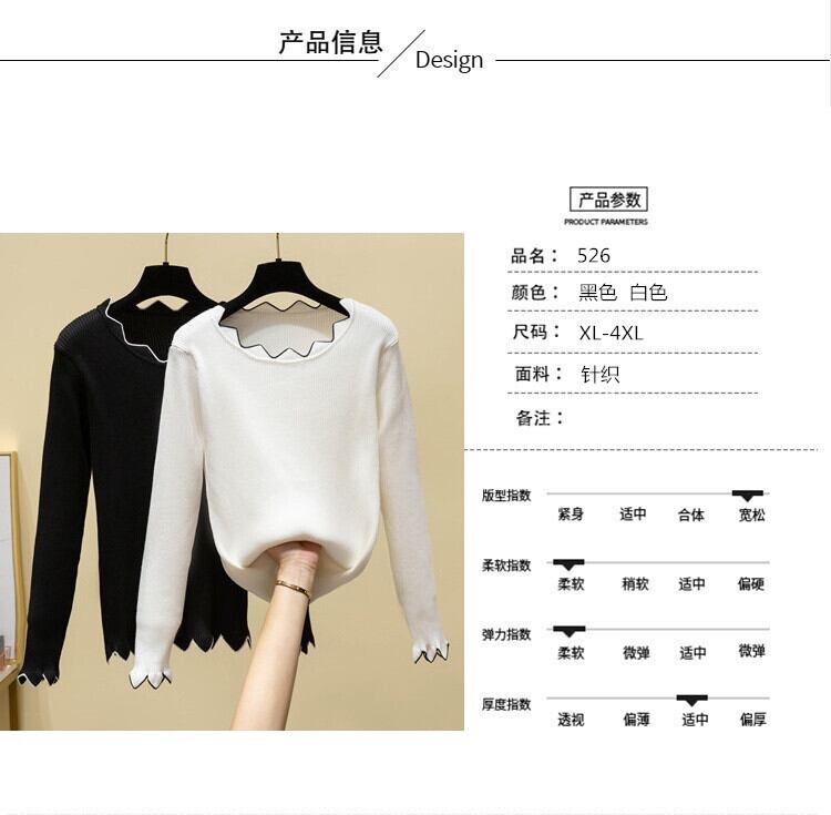 プラスサイズの婦人服 2023 春の新ファッションオールマッチスリムプルオーバー長袖ニットボトムシャツ脂肪姉妹 ロング 大きめサイズ スプリング 春物 8884167073502041