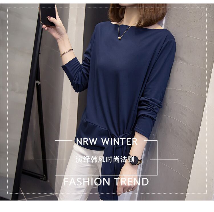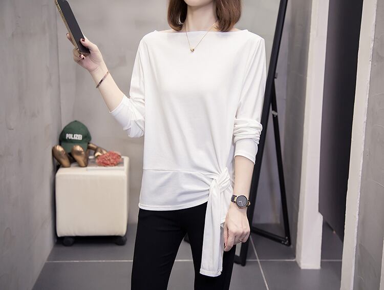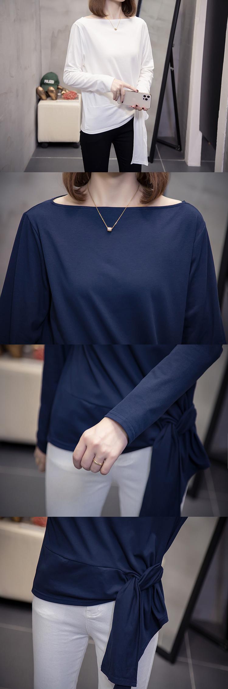 プラスサイズの婦人服 2023 春の新しいスタイルの太った姉妹の気質の自己修養とスリムな一言の襟のファッションのストラップ付きのボトムシャツの女性 大きめサイズ スプリング 春物 8884155217756596