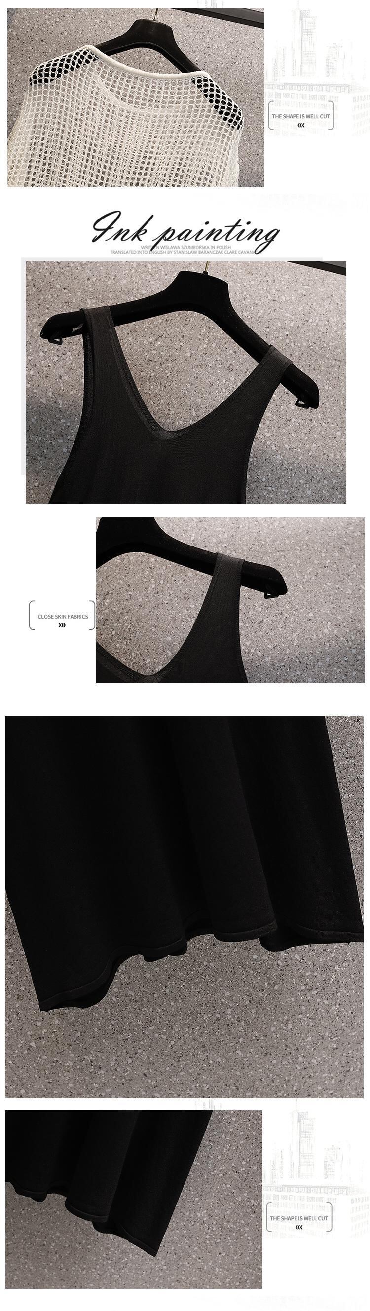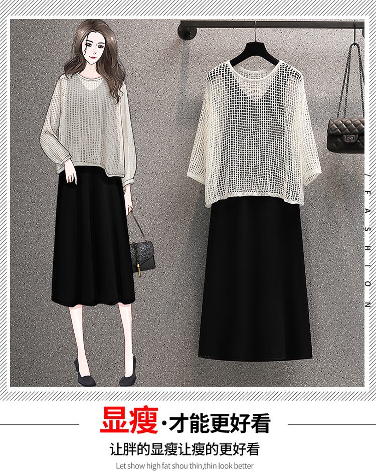 大きいサイズの婦人服2023春服ファットシスターズ新作薄手中空アウトブラウスニットサスペンダースカート2点セット 大きめサイズ スプリング 春物 88841365858049