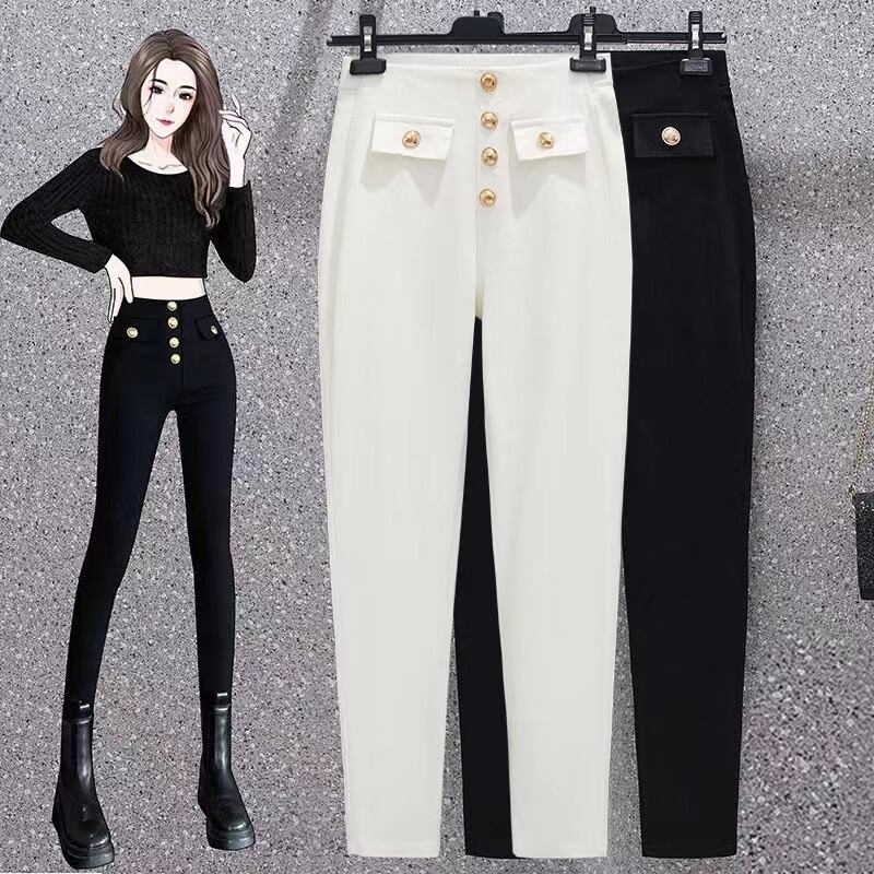 大きいサイズの婦人服 2023 春の新作服 ファット オールマッチ 高弾性 ハイウエスト スリムフィット カジュアルパンツ エラスティック 伸縮 大きめサイズ スプリング 春物 888415709512370